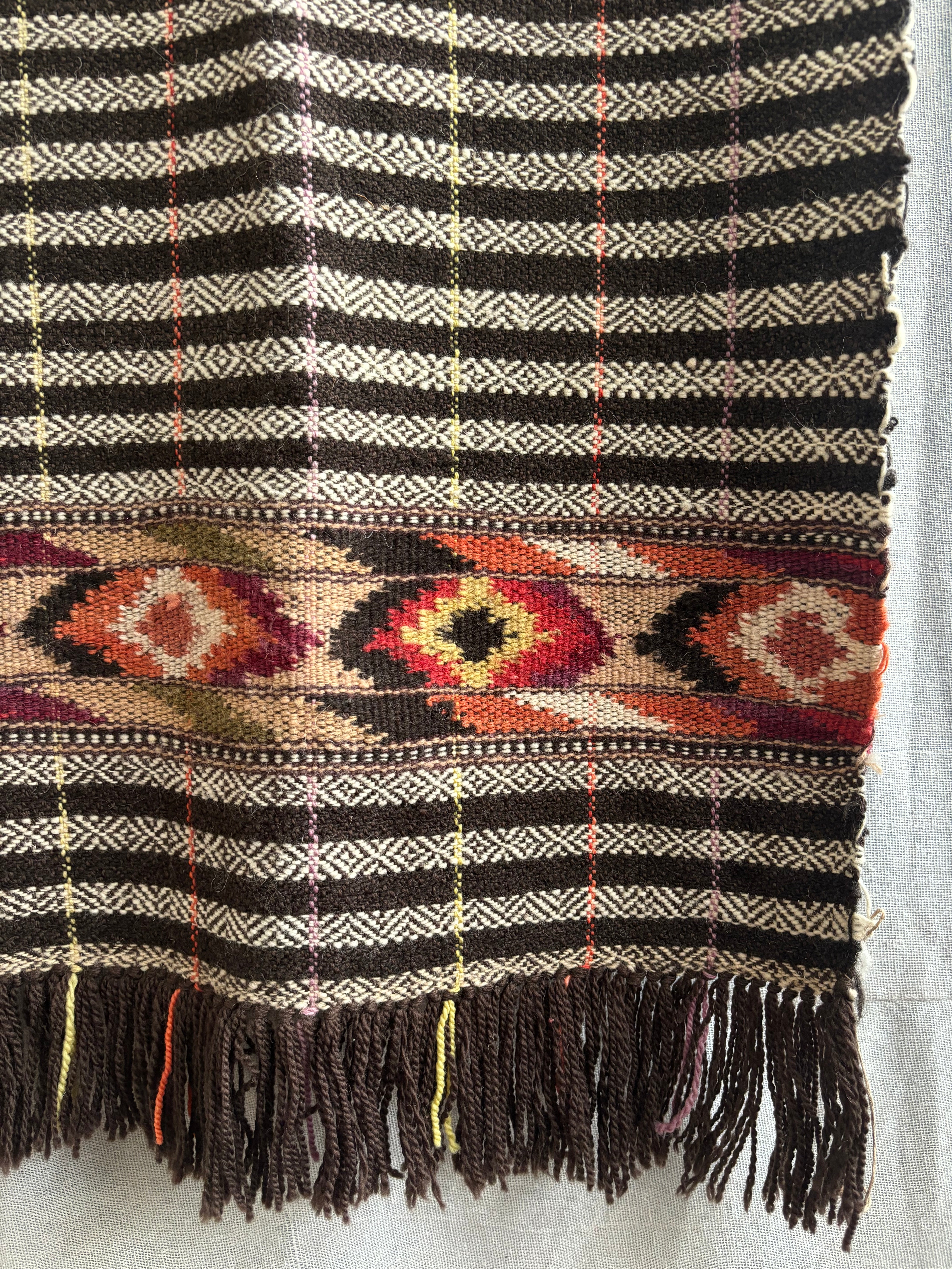 The Heritage Motif Stole, this handwoven wool stole blends traditional craftsmanship with modern style. Soft and warm with a natural texture, its contrasting hues add a refined touch to any outfit. A versatile piece, perfect for layering through the seasons.
