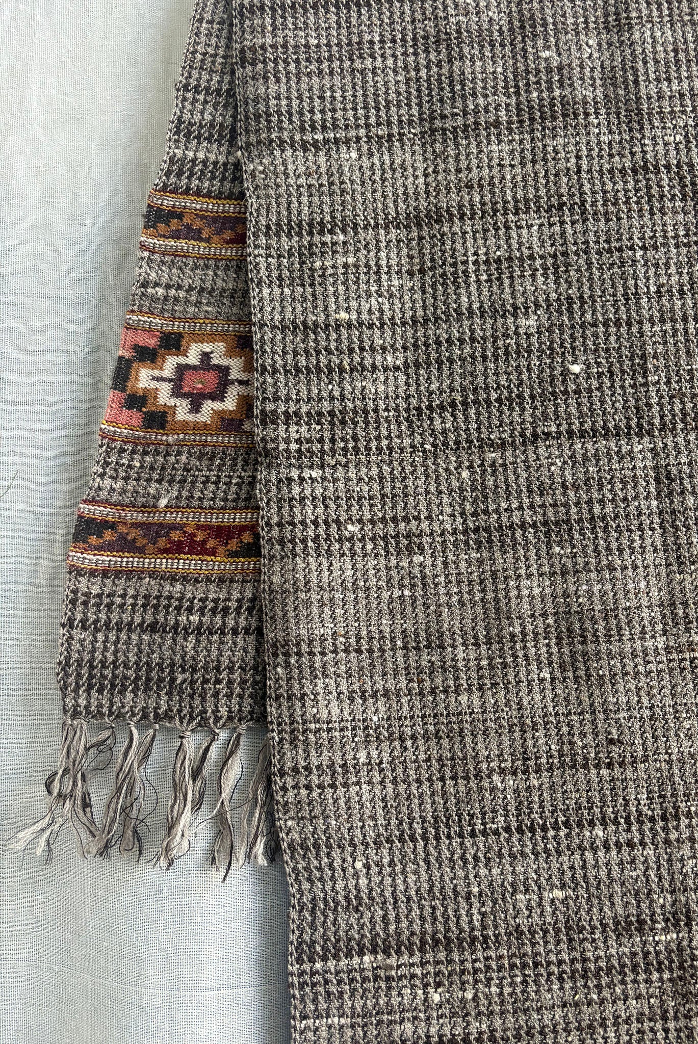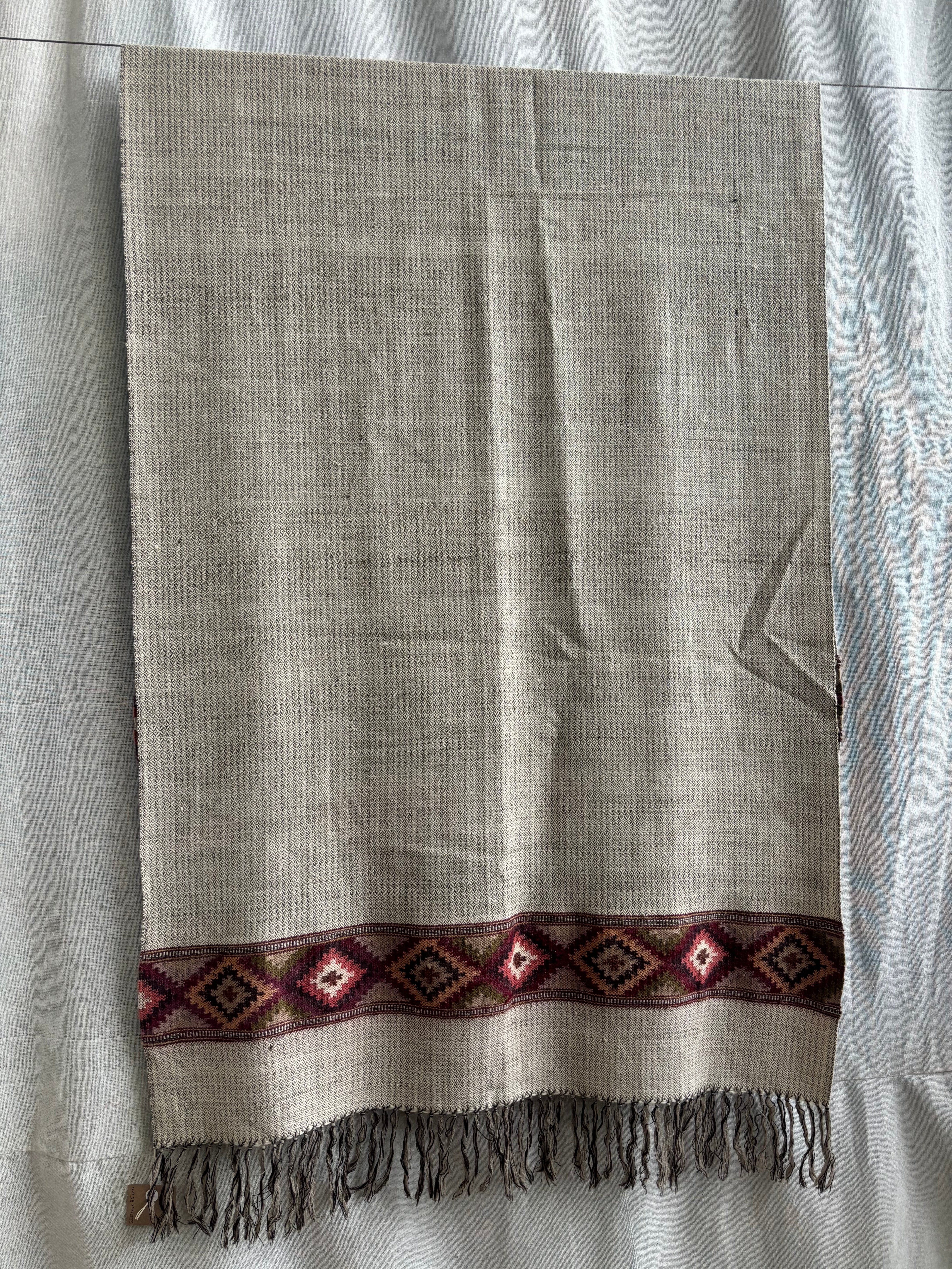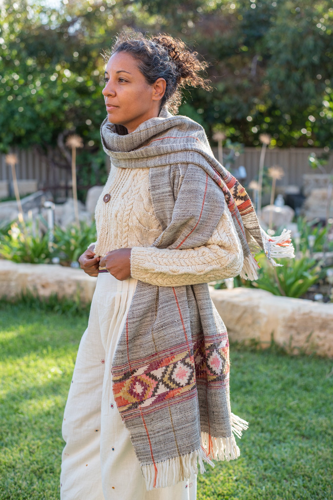 The Heritage One Shawl is a beautifully handwoven wool piece that combines timeless craftsmanship with modern elegance. Its soft, natural texture provides both warmth and comfort, making it perfect for layering over any outfit.