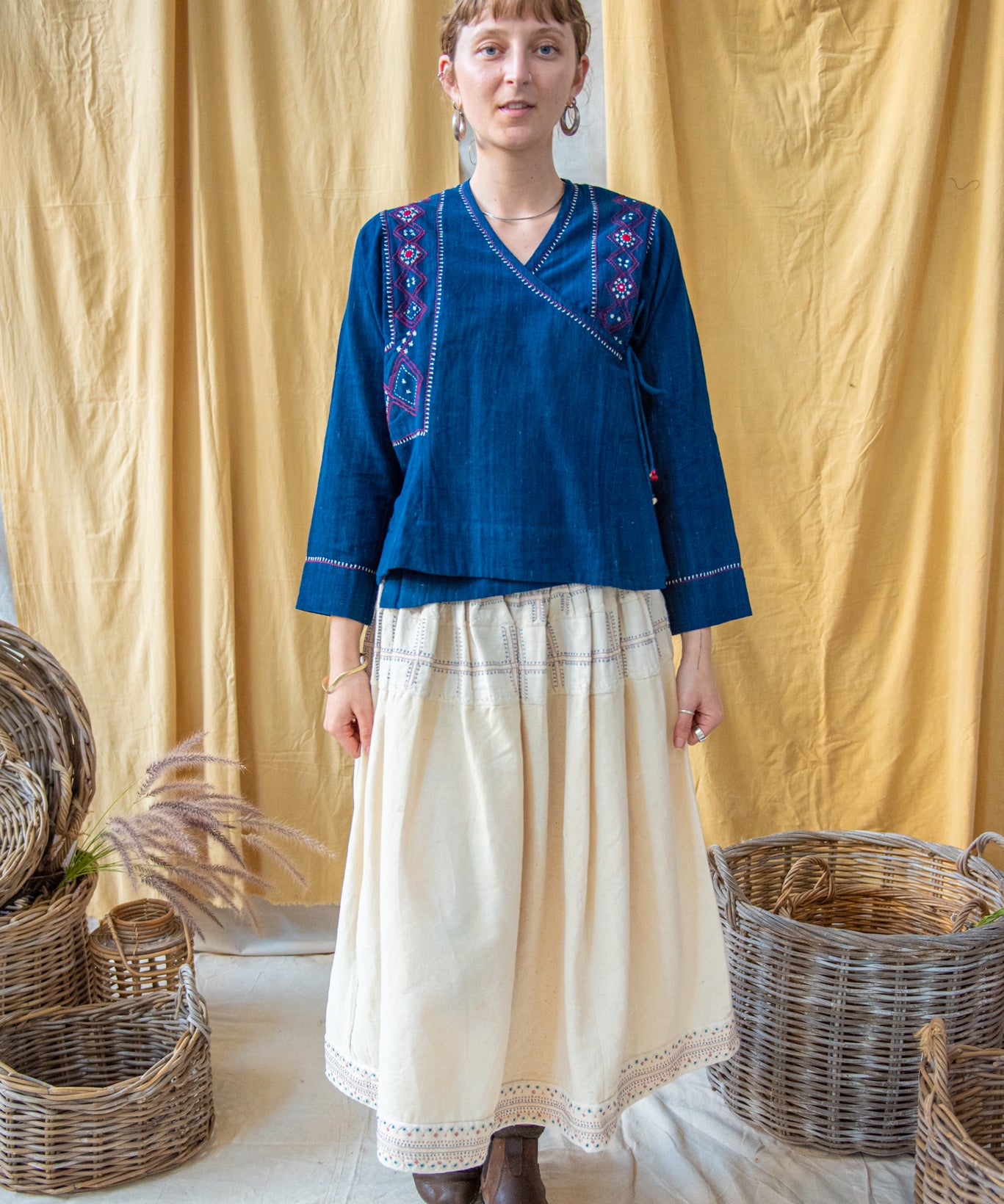 Led by a collective of skilled women, Porgai empowers artisans through education, fair income, and creative freedom. Using natural dyes and hand-embroidered motifs, they breathe new life into ancient textile traditions, transforming them into wearable stories.