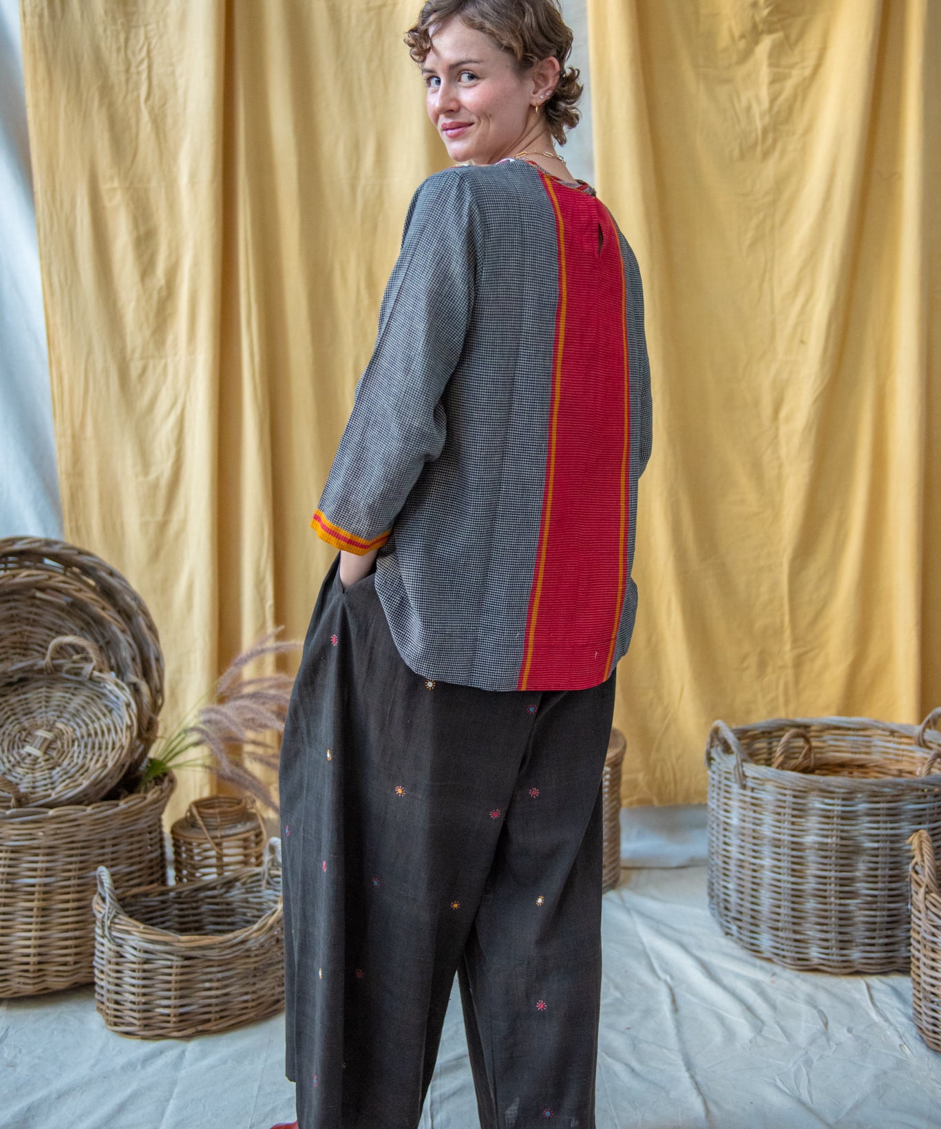 The Porgai Artisan Collection is a tribute to the timeless beauty of Lambadi embroidery, handcrafted by women artisans from the Sittilingi Valley in Tamil Nadu, India. Each piece blends traditional techniques with sustainable fashion practices, celebrating cultural identity and ethical craftsmanship.