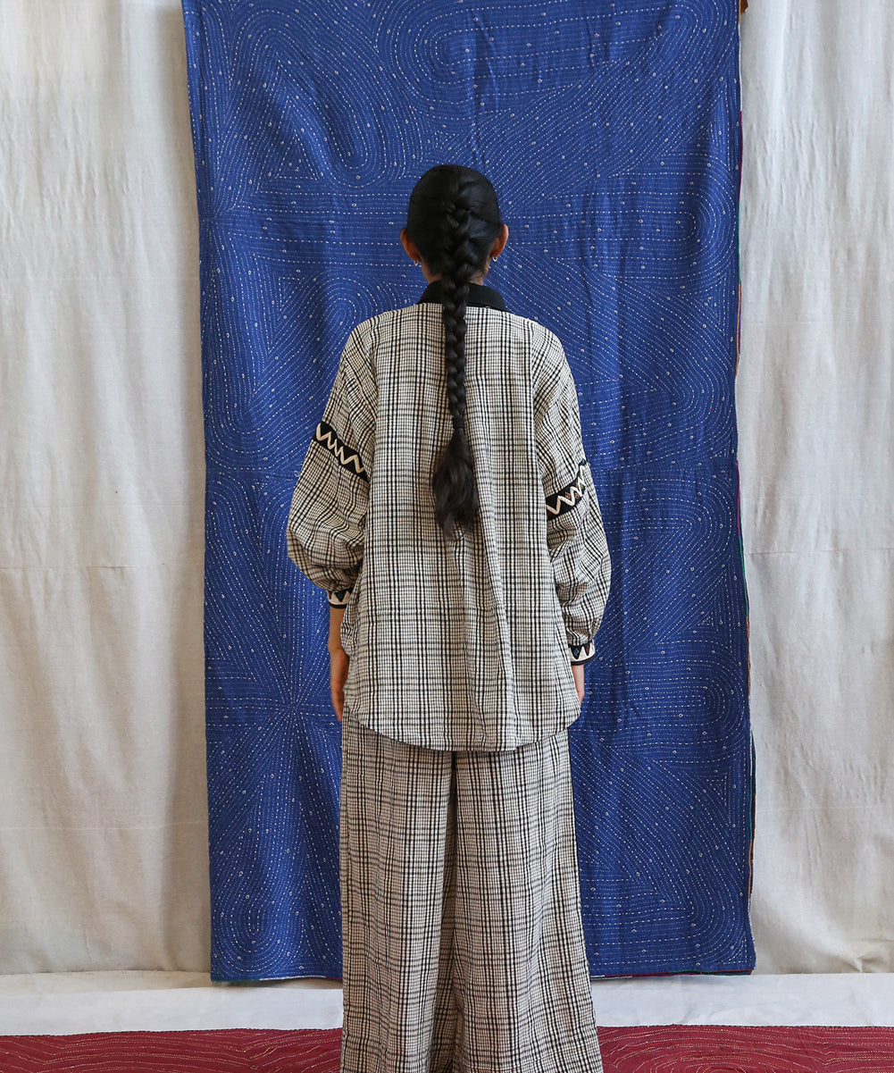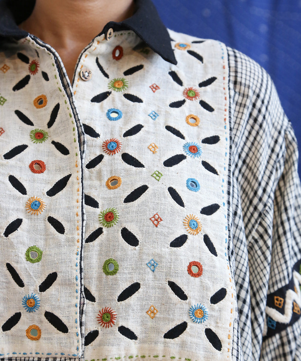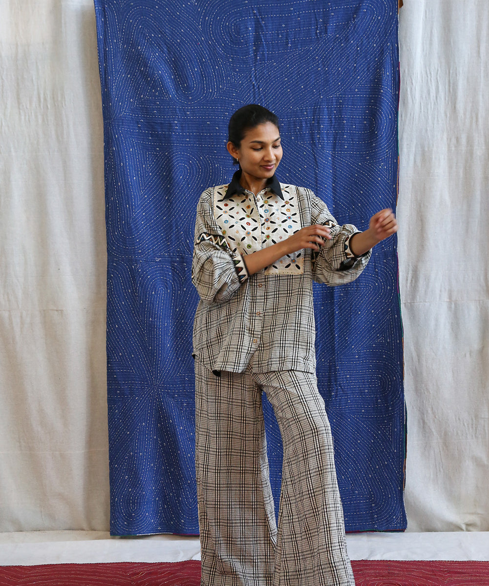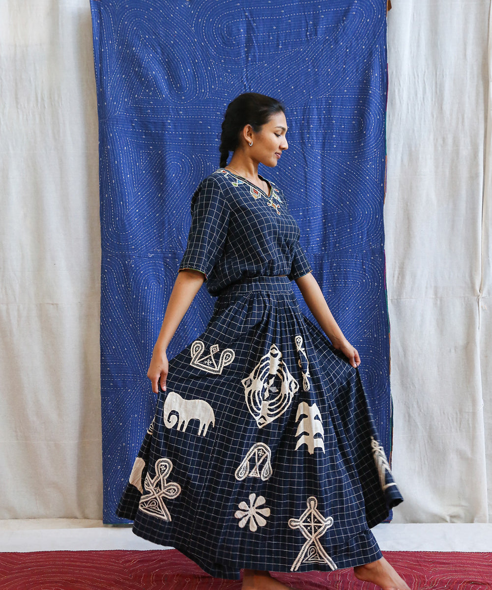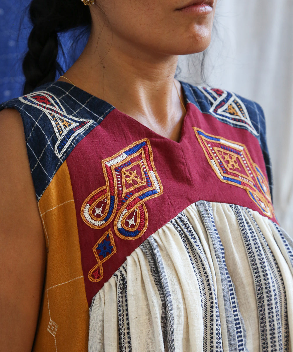 This curated collection draws inspiration from the rich heritage of the Rabari community, brought to life through collaboration, design development, and storytelling. Each piece represents a journey — from the skilled hands of Rabari women in Kachchh led by Geeta Bhavesh Rabari, whose embroidery carries generations of tradition, to designer Kalyani Prasad’s contemporary reinterpretation through The ANJELMS Project.