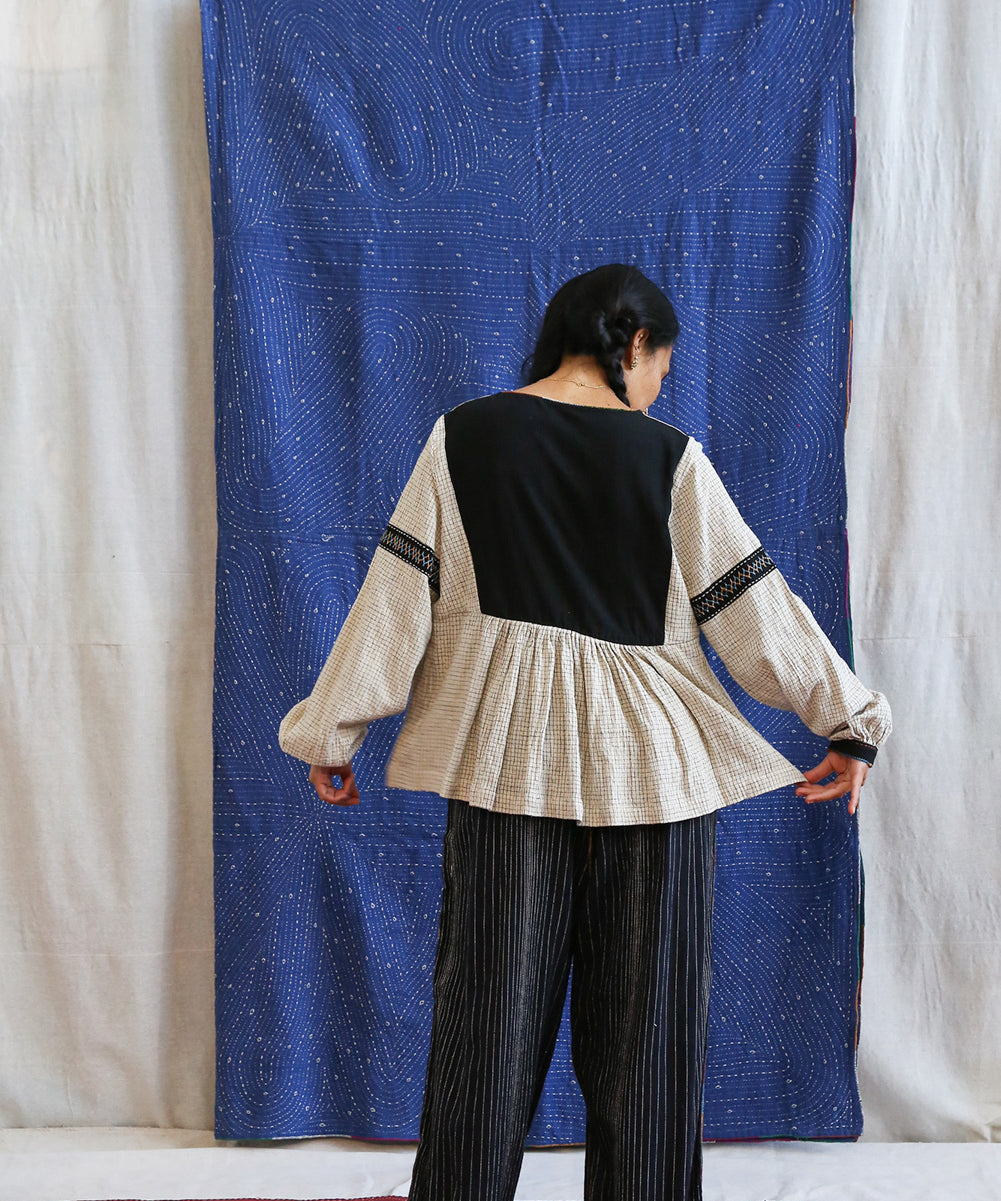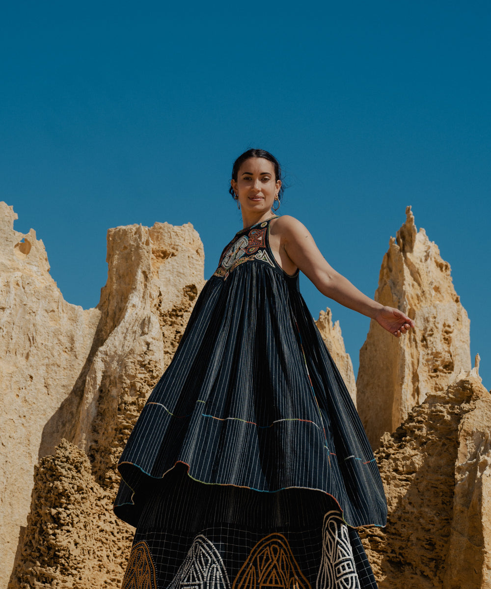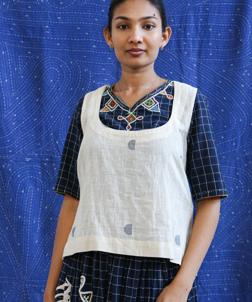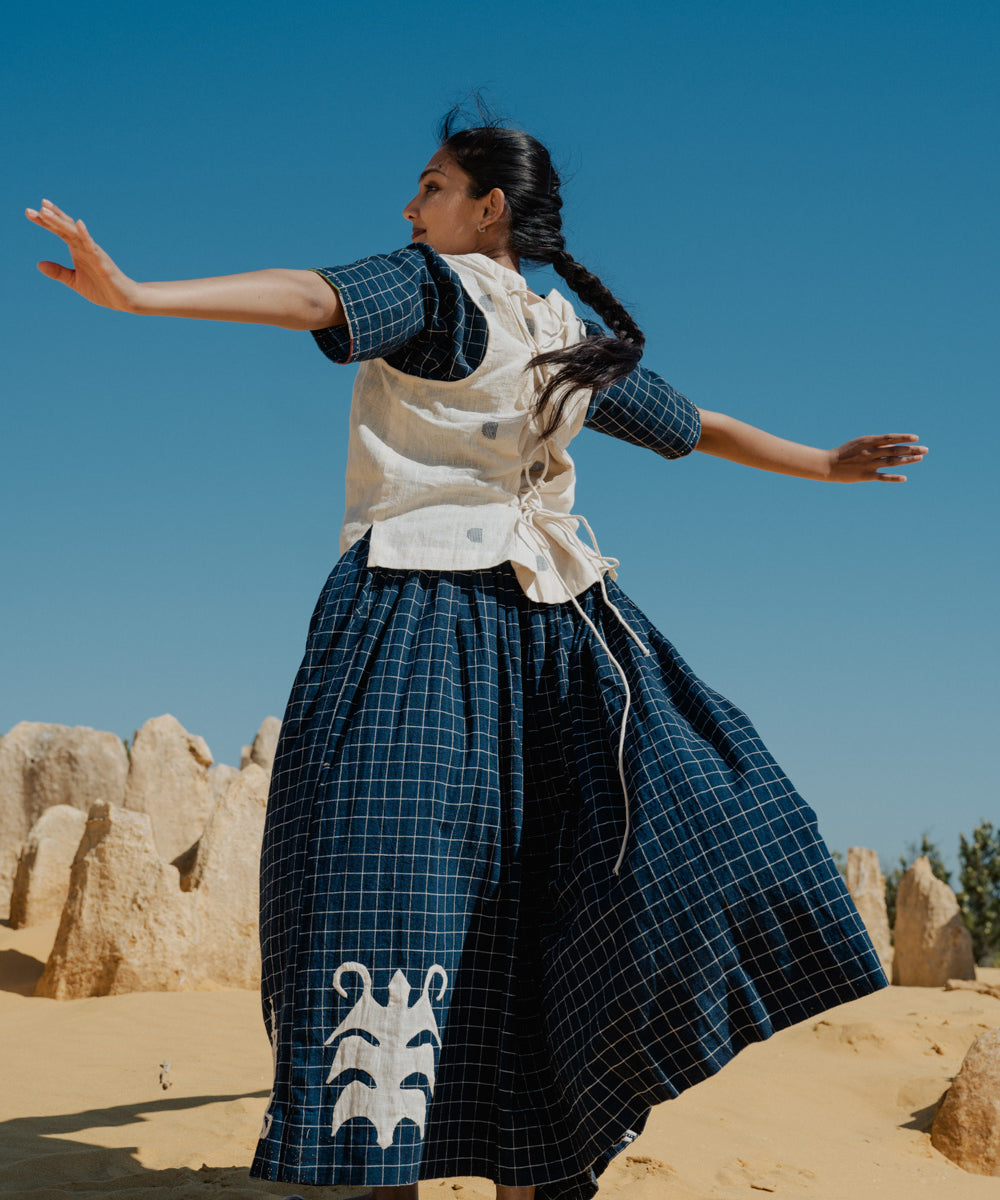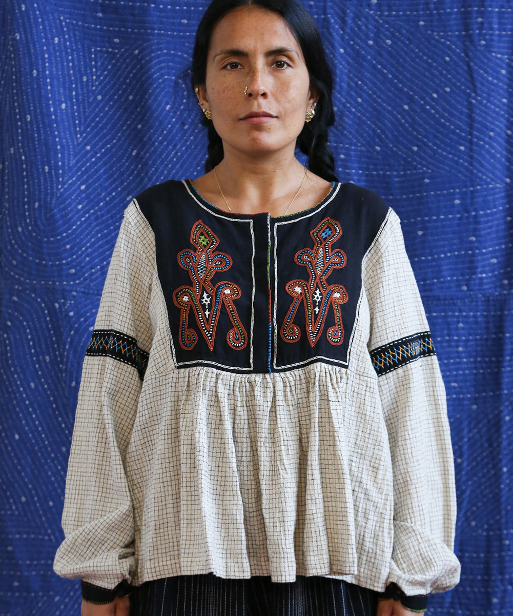 This curated collection draws inspiration from the rich heritage of the Rabari community, brought to life through collaboration, design development, and storytelling. Each piece represents a journey — from the skilled hands of Rabari women in Kachchh led by Geeta Bhavesh Rabari, whose embroidery carries generations of tradition, to designer Kalyani Prasad’s contemporary reinterpretation through The ANJELMS Project.