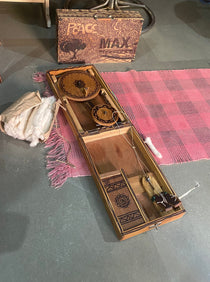 This research led me to meet Avani Varia on my first night in Ahmedabad. After contacting her through her Instagram page of Charkhaindia where she provides initiations and weekly Charkha classes for people from all walks of life, Avani invited me to her own home filled with research papers from academic studies of the art and heritage of Gujarat and memories of her late father who supported her in her journey and instilled in her a life of service for others. Her mother was present serving us the most wonderful chai and telling stories of her past and how spinning was part of her daily life growing up. Together they pulled out their treasured Charkha boxes, Takli spinning tools and meters of Khadi woven from the yarn spun by many in the community. Together, they shared how this box has been such an important part of their life, cultural heritage and Avani’s mission to preserve it before India forgets about it.