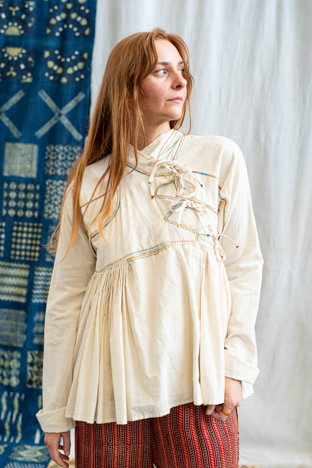 Her work embodies the strength, patience, and cultural pride of the Rabari people, making every piece a celebration of heritage and craftsmanship.