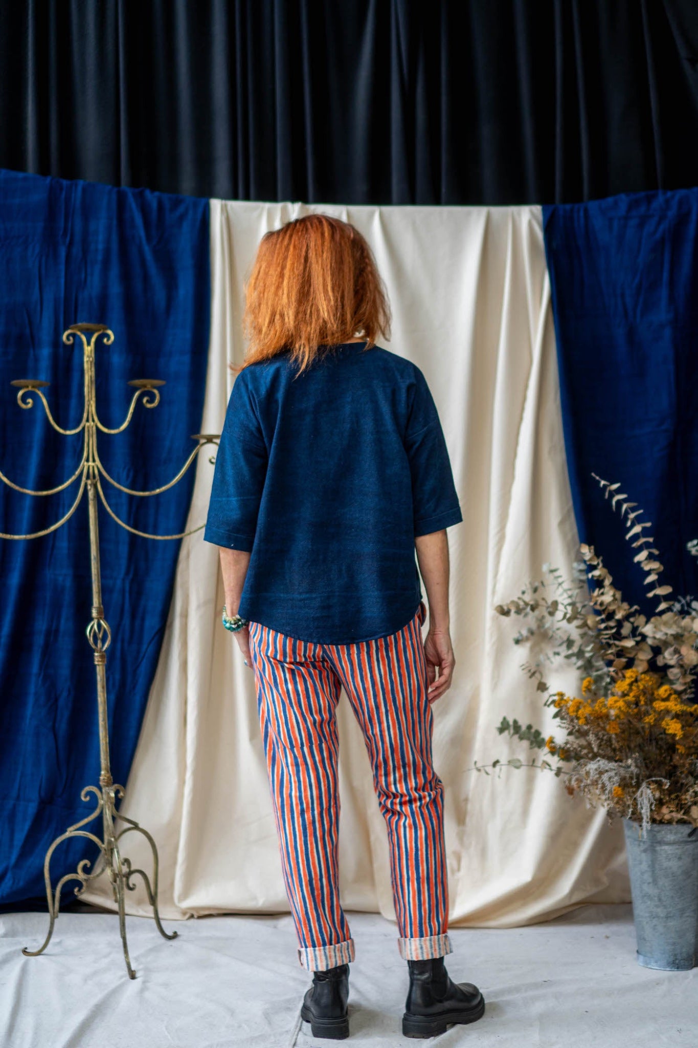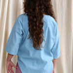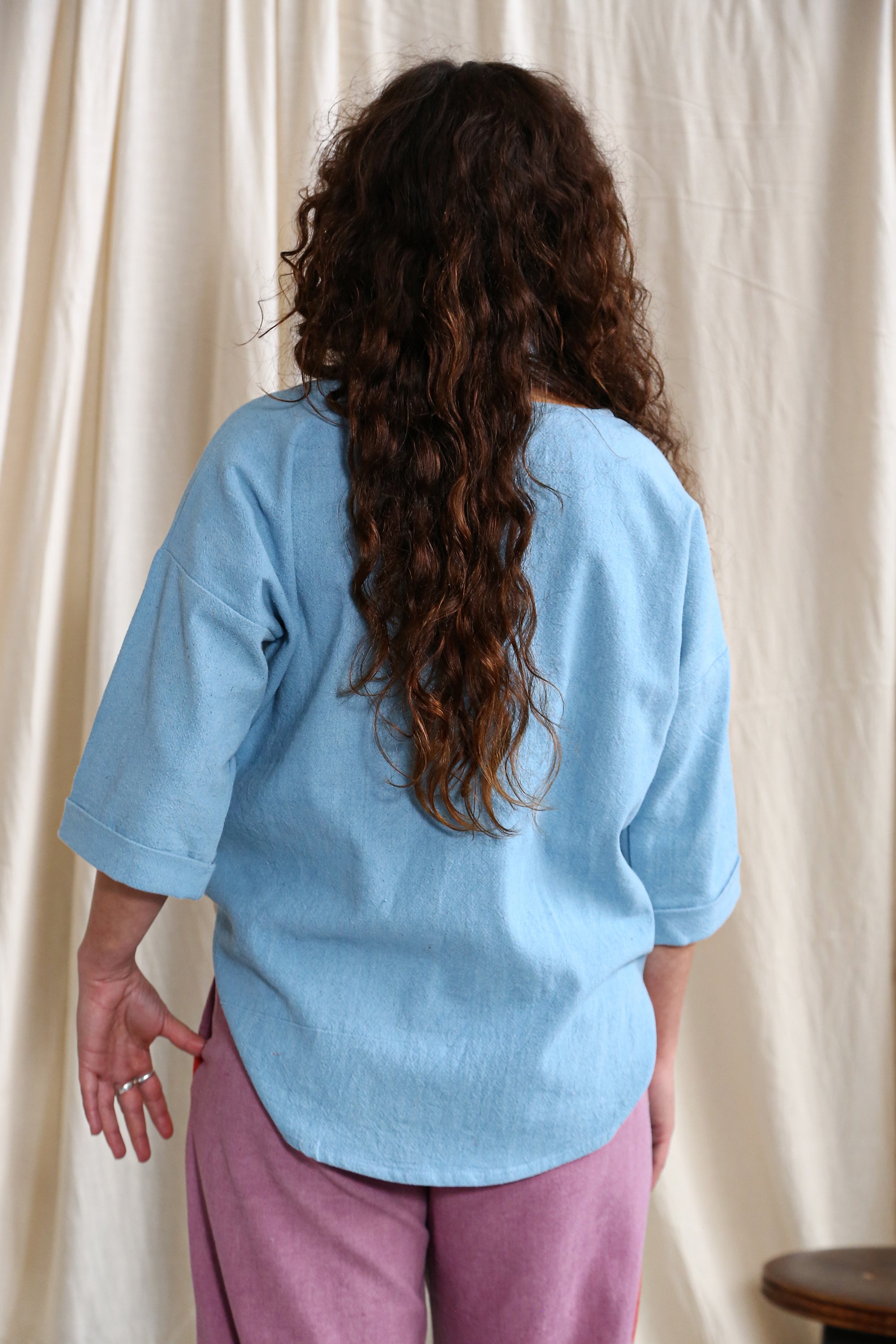 Featuring a relaxed silhouette and half sleeves with a unique texture that adds depth and character to any outfit, this top is designed for comfort and ease of movement. The medium weight Khadi ensures it is both sturdy and breathable, making it a versatile piece for any season.