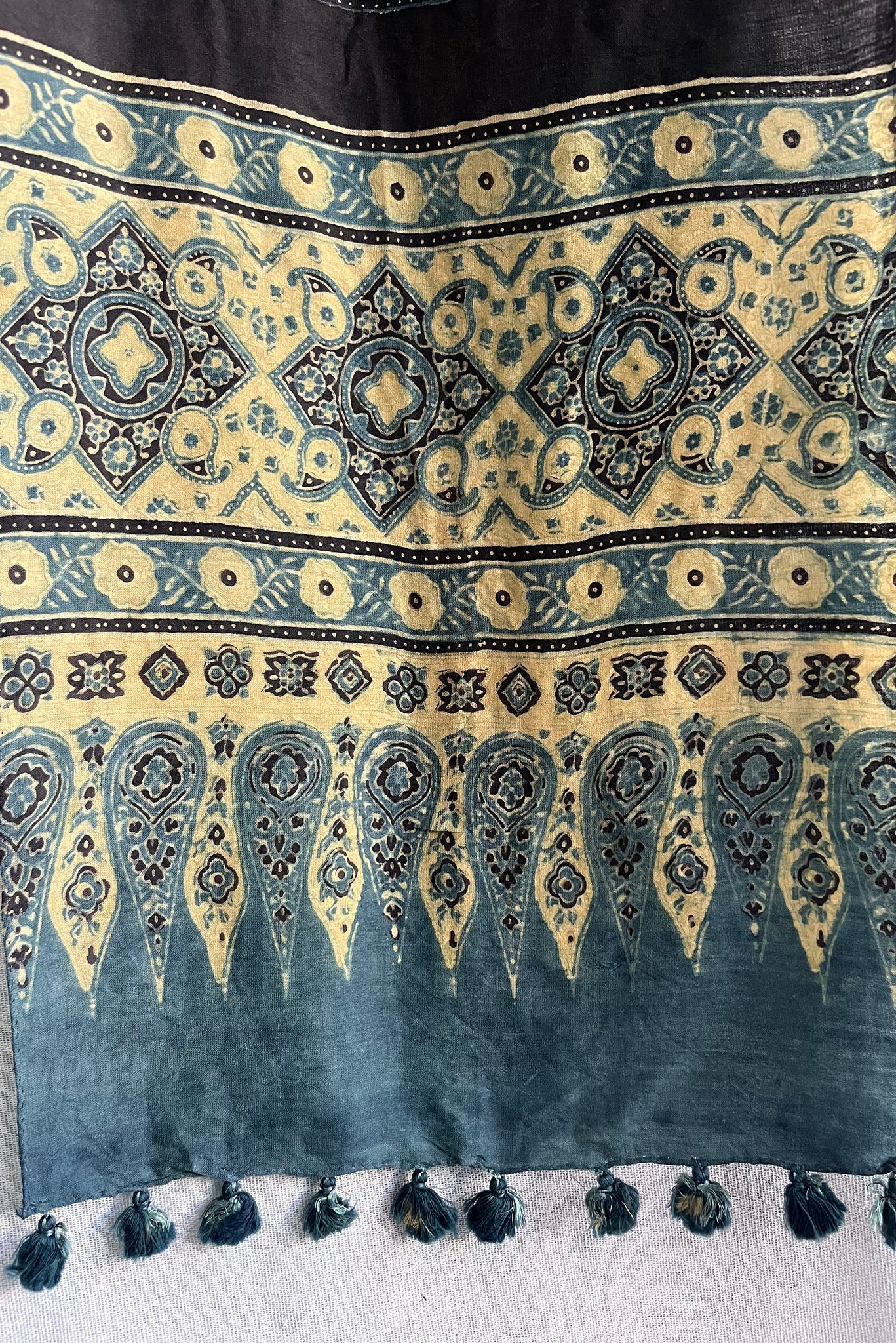 Whether draped around the neck or worn as a statement piece, the Ajrakh accessory allows you to embrace the timeless elegance of one of India’s most cherished textile arts.
