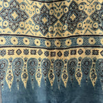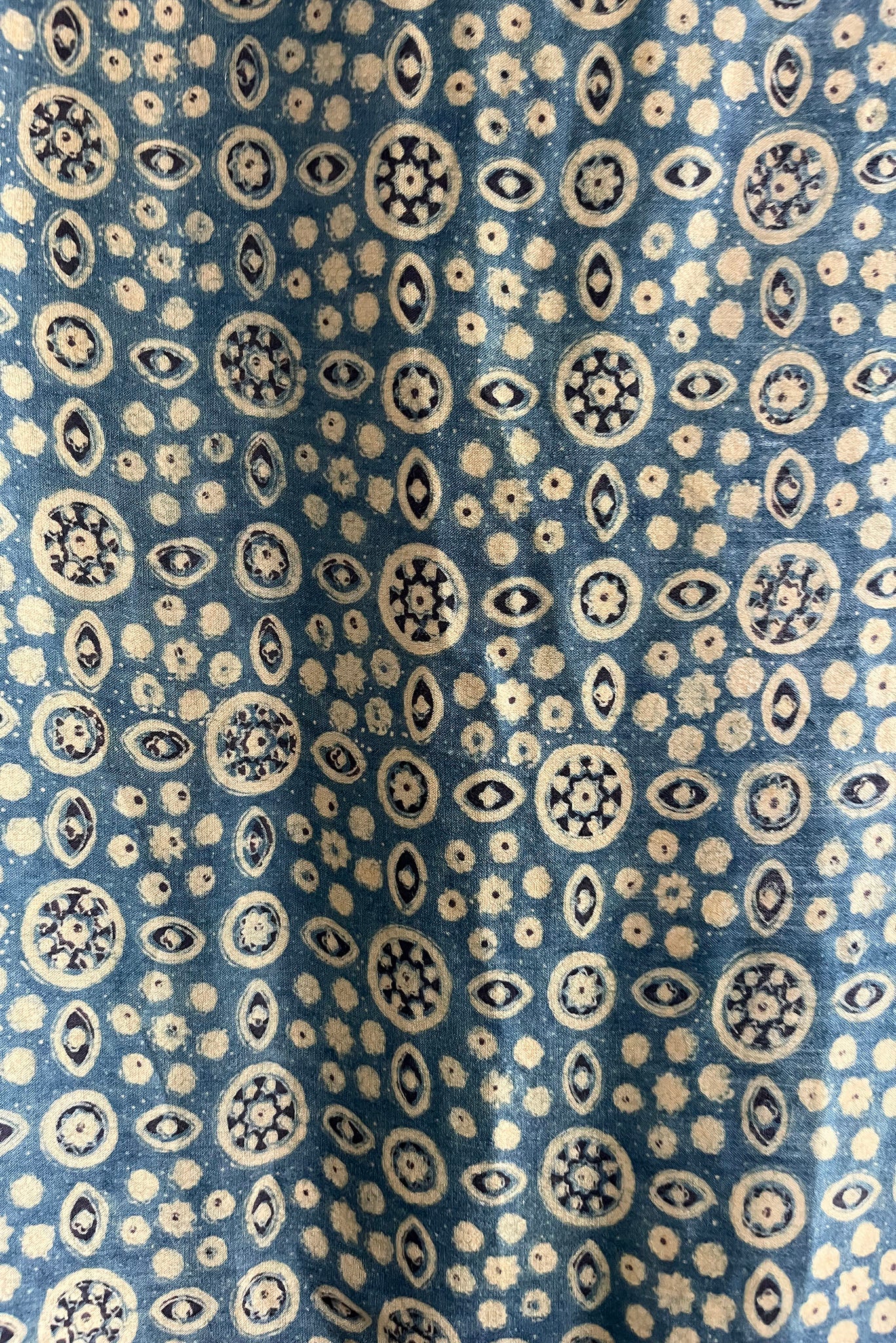 Ajrakh is a 4,500-year-old textile art, known for its intricate double-sided hand block printing and resist dyeing techniques. Using natural plant-based dyes like indigo and madder, each piece is created through a careful multi-step process, with layers of color added day by day using custom hand blocks to produce detailed, one-of-a-kind patterns.