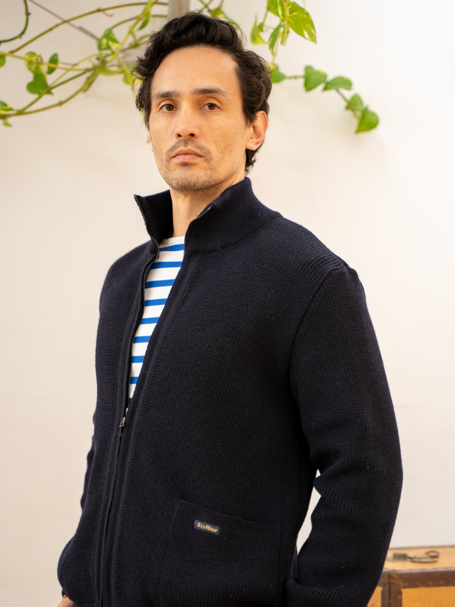 The navy zipped jacket from Le Minor has been a hallmark of their collections for over 50 years.