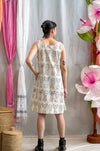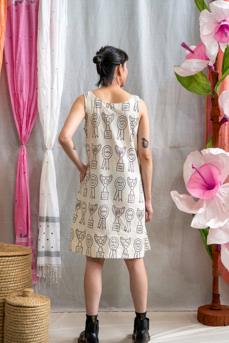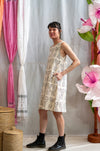 Based on the mid century shift dress, this dress is a celebration of meticulous craftsmanship and eco-consciousness. Completed with a round neckline, modest shoulder straps and an A-line silhouette stops at knee length.