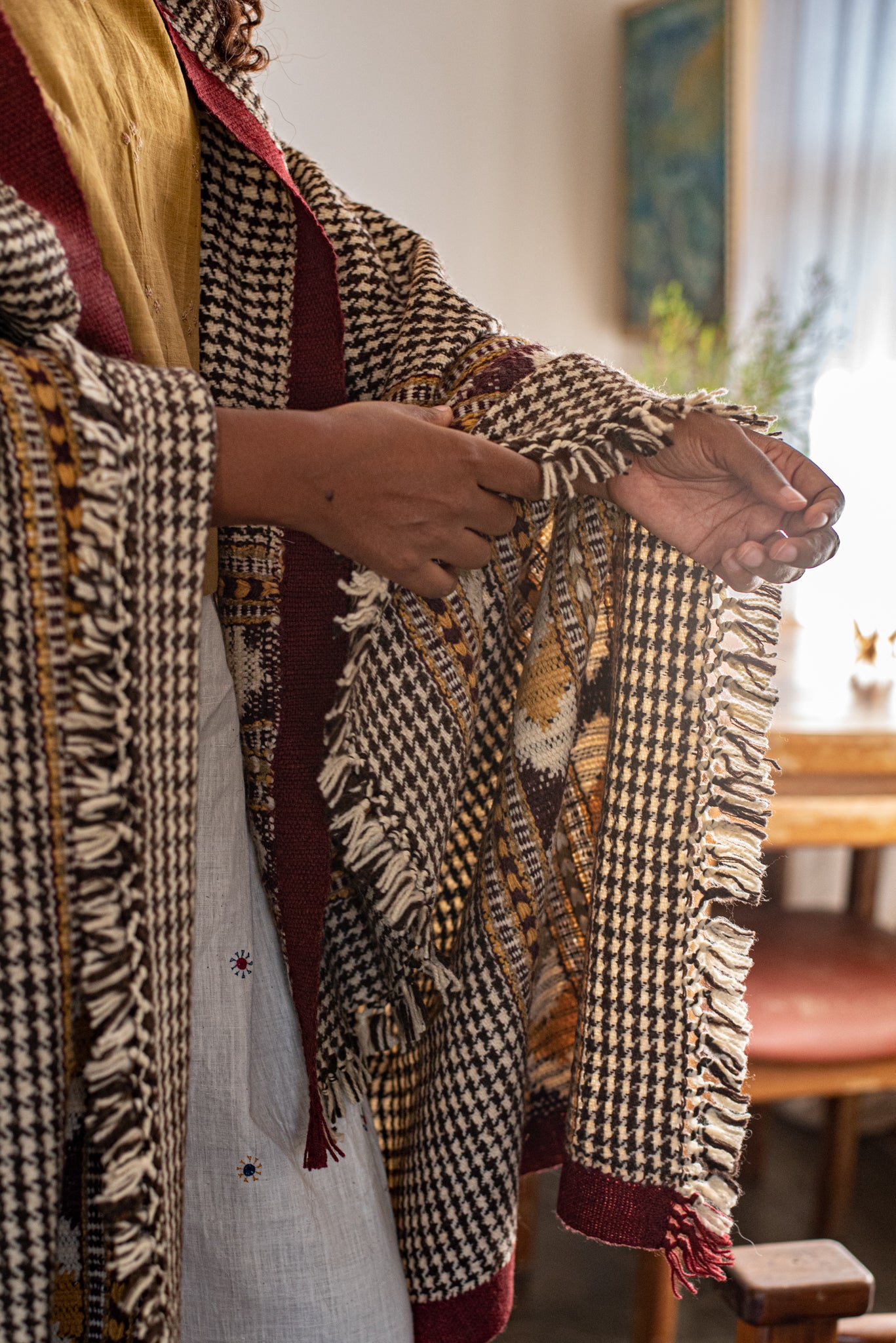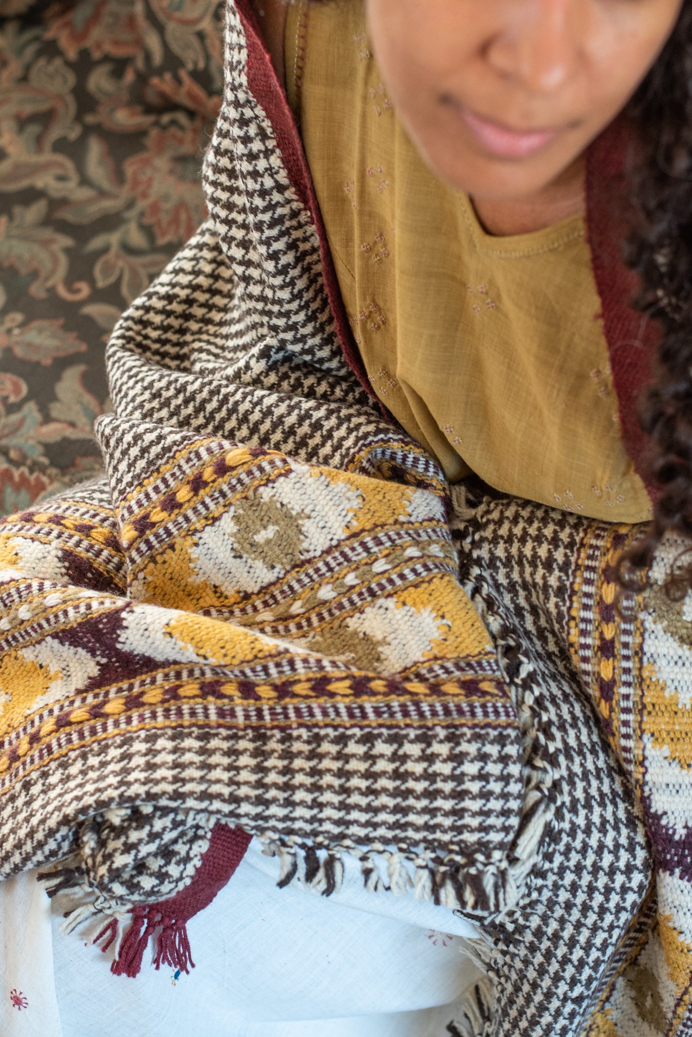 Founded in 2012, Kullvi Whims is dedicated to celebrating the beauty of slow craftsmanship. They work with traditional craftsmen as their artisans, who have learned their skills of spinning, weaving, knitting, and crochet from family members, predominantly creating pieces for personal use, such as pattus, blankets, sweaters, mojiris, and socks. Aligned with the seasonal rhythms of mountain life, each Kullvi Whims piece embraces the deep connections between nature and craft.