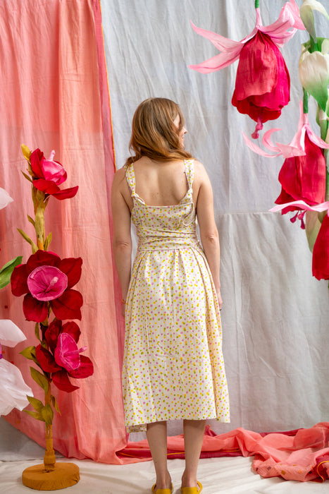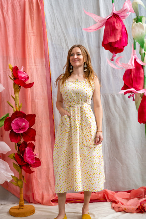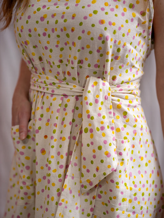 Confetti Print – featuring 3 layers of colours hand blockprinted for the ultimate playful take on a classic polkadot print.