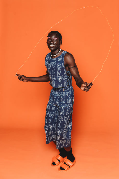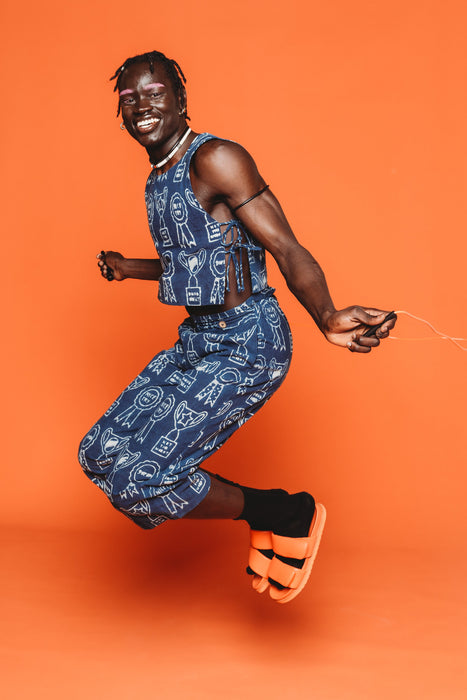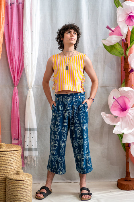 Indigo Trophy Printthis fabric is hand block printed with mud, dipped multiple times in natural indigo for a deep blue hue, then the mud is washed off to reveal a beautiful negative print.