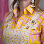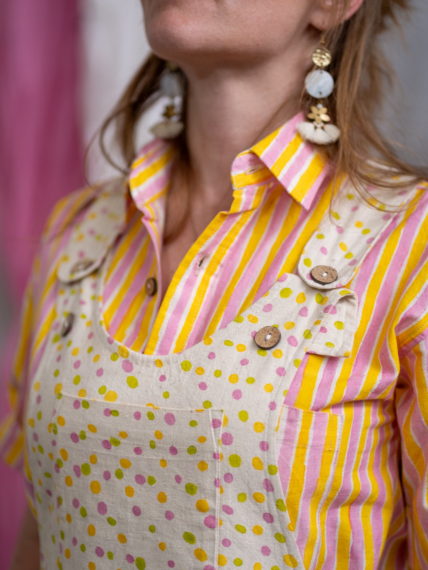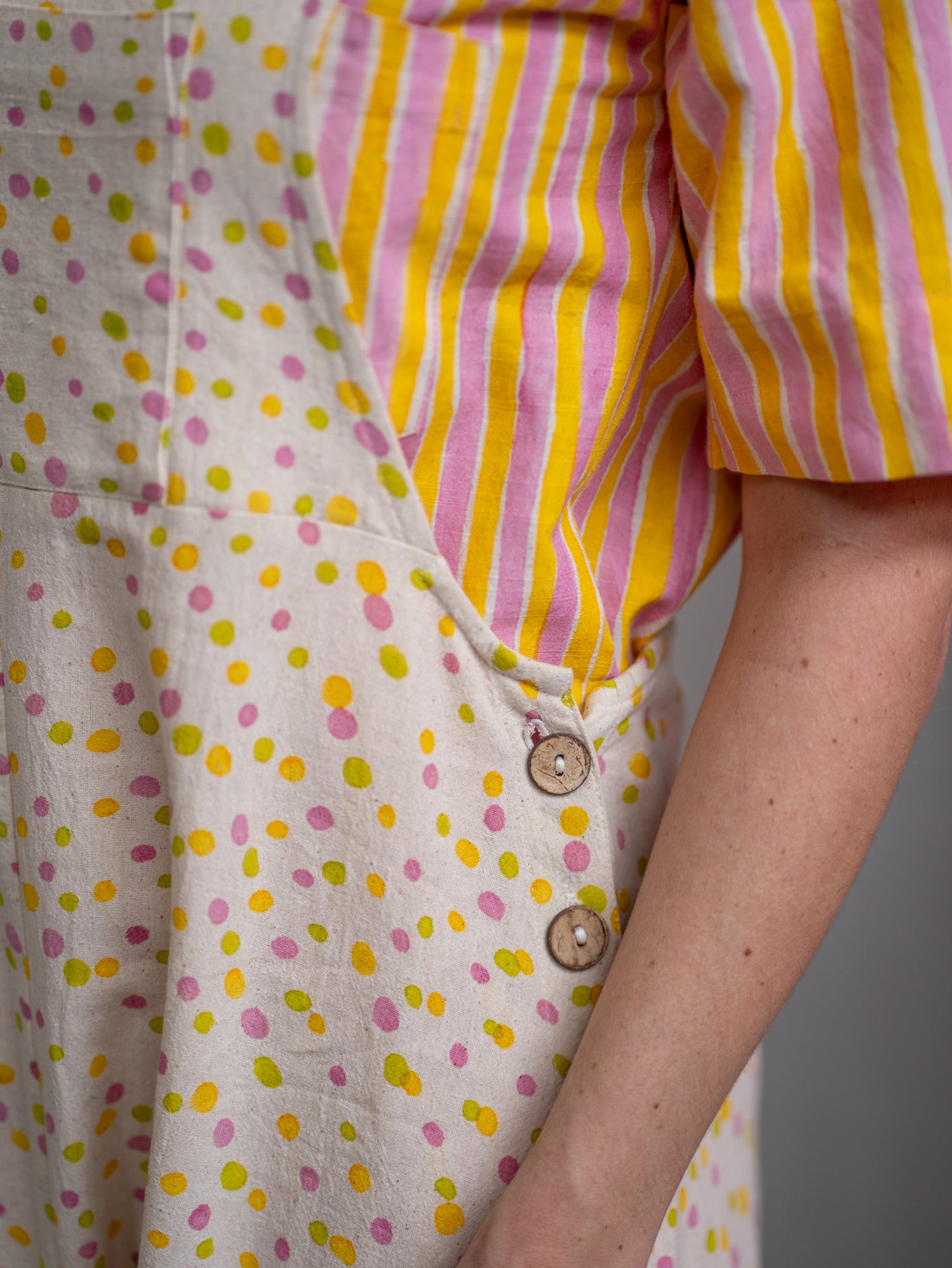 This piece is designed in collaboration with Brisbane based ceramic artist, Bonnie Hislop and available in the Confetti Print, which is achieved by hand block printing 3 layers of colours for the ultimate bright pop of colour.
