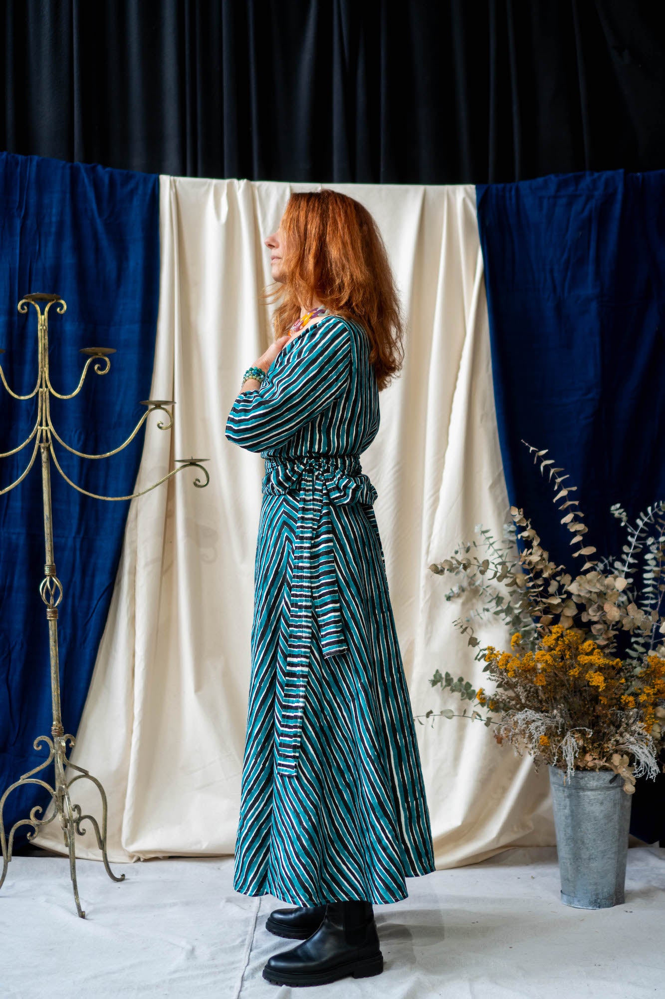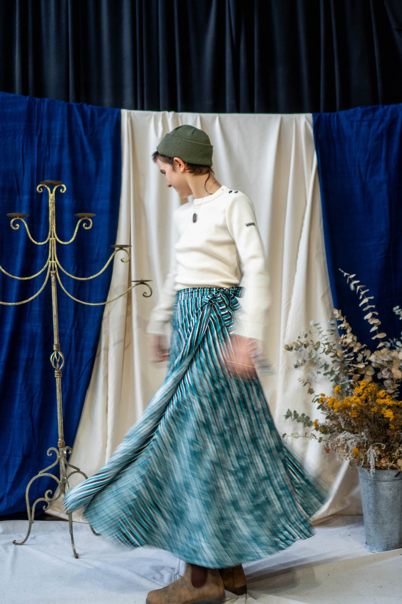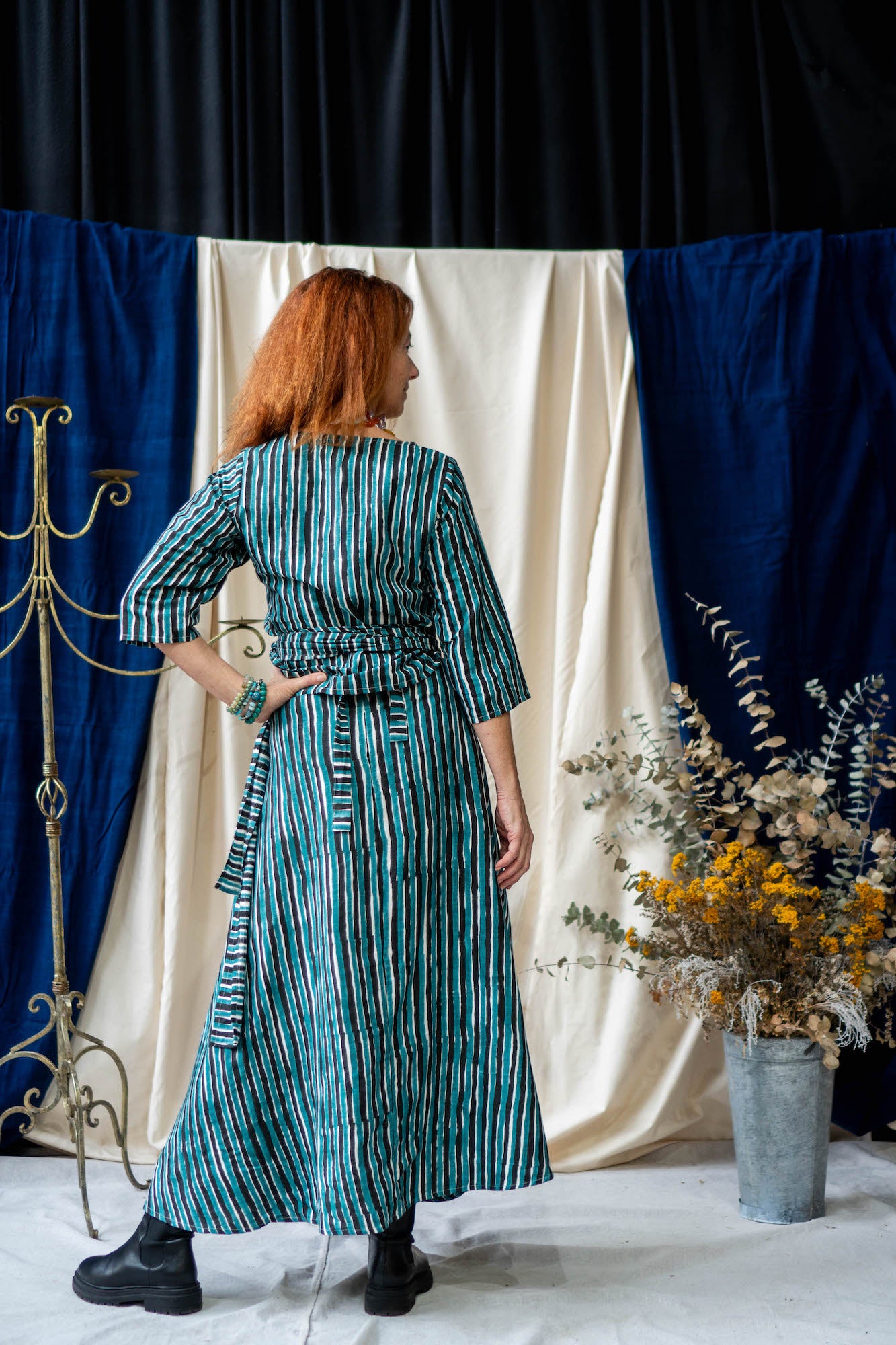 Made ethically from 100% handspun, handwoven Khadi cotton. Our model wears a size S/M and this piece is true to size.