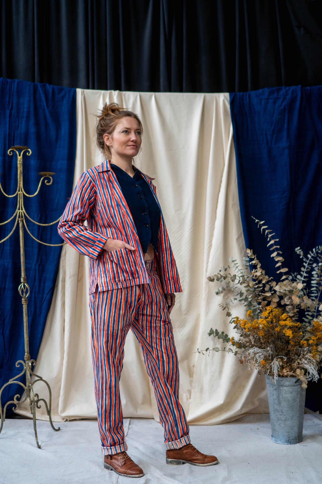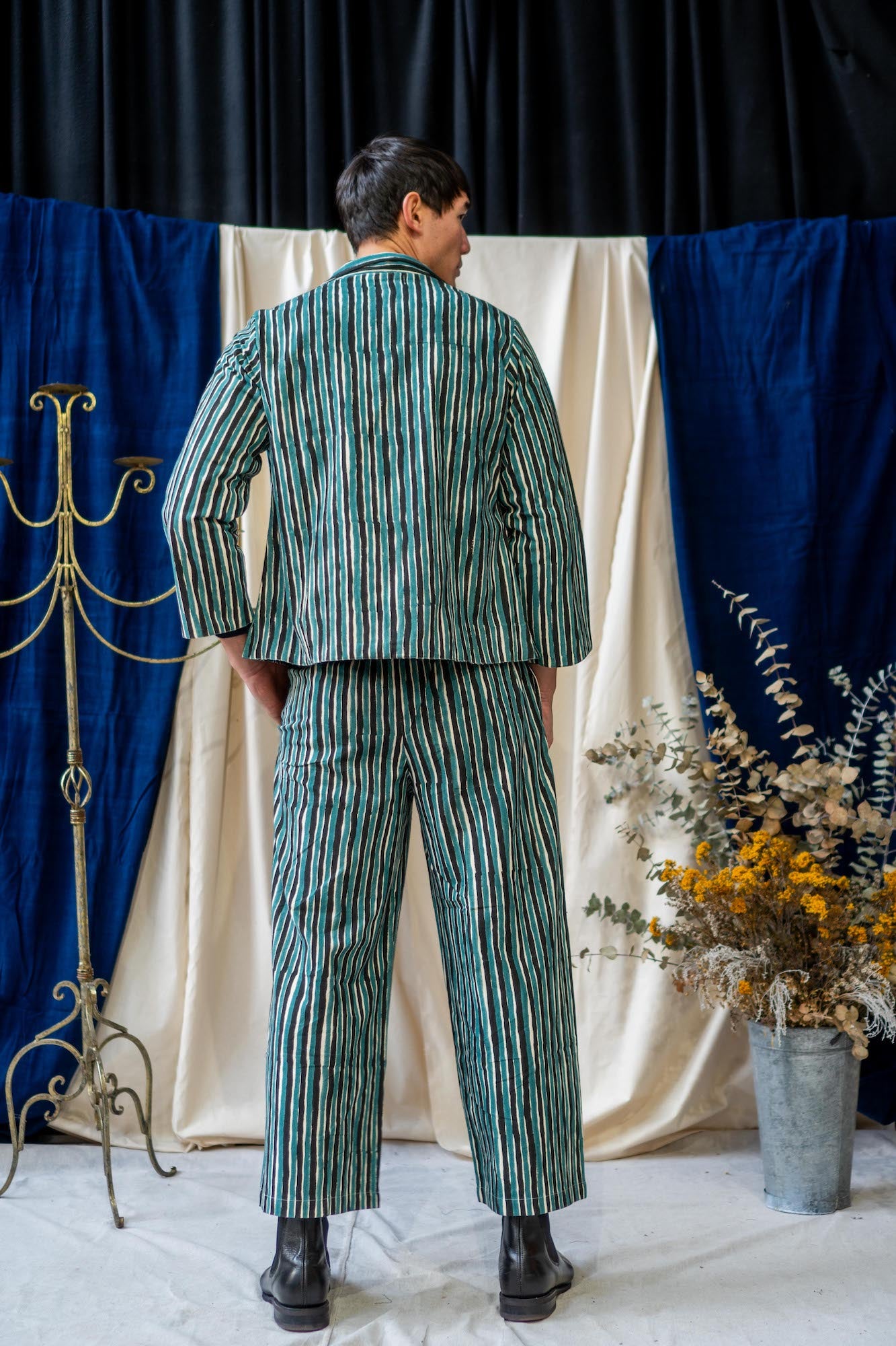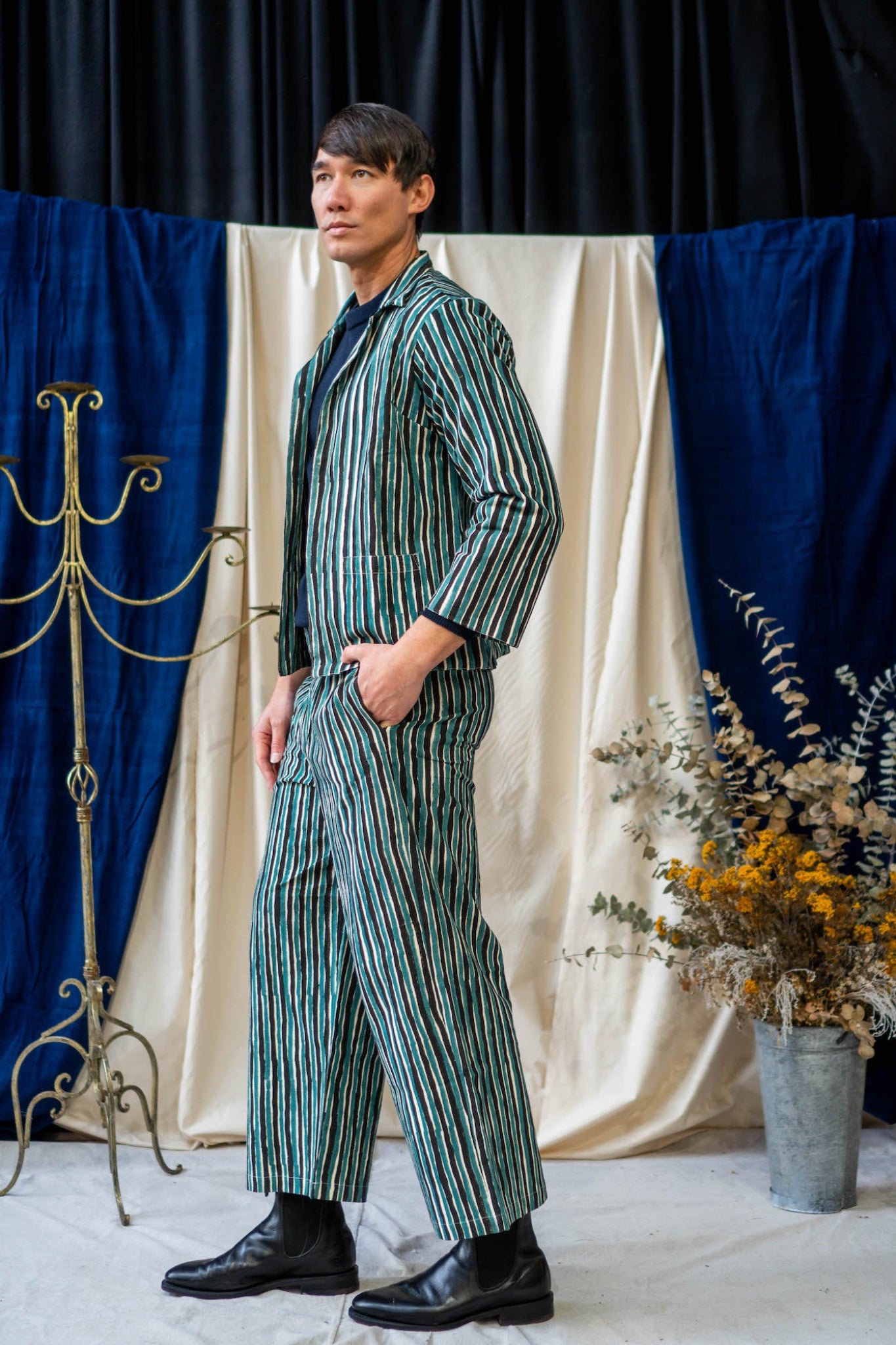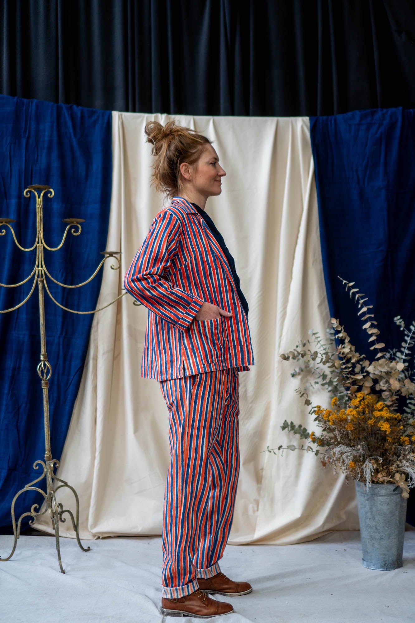 Featuring a crisp collar, two front pockets, and cropped hem to sit on the hips, this timeless piece is the perfect lightweight travel jacket to throw over your daytime outfit as the sun is going down at a picnic or layered over a basic skivvy or t-shirt. The wrist hem can easily be rolled to create a cuff, as the jacket is lined in matching hand-loomed khadi cotton making it breathable and fresh feeling on the skin.