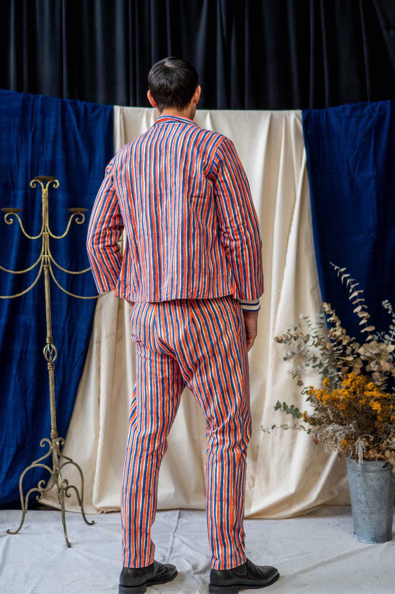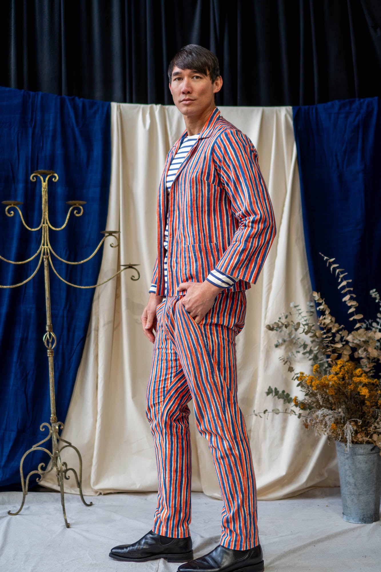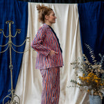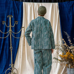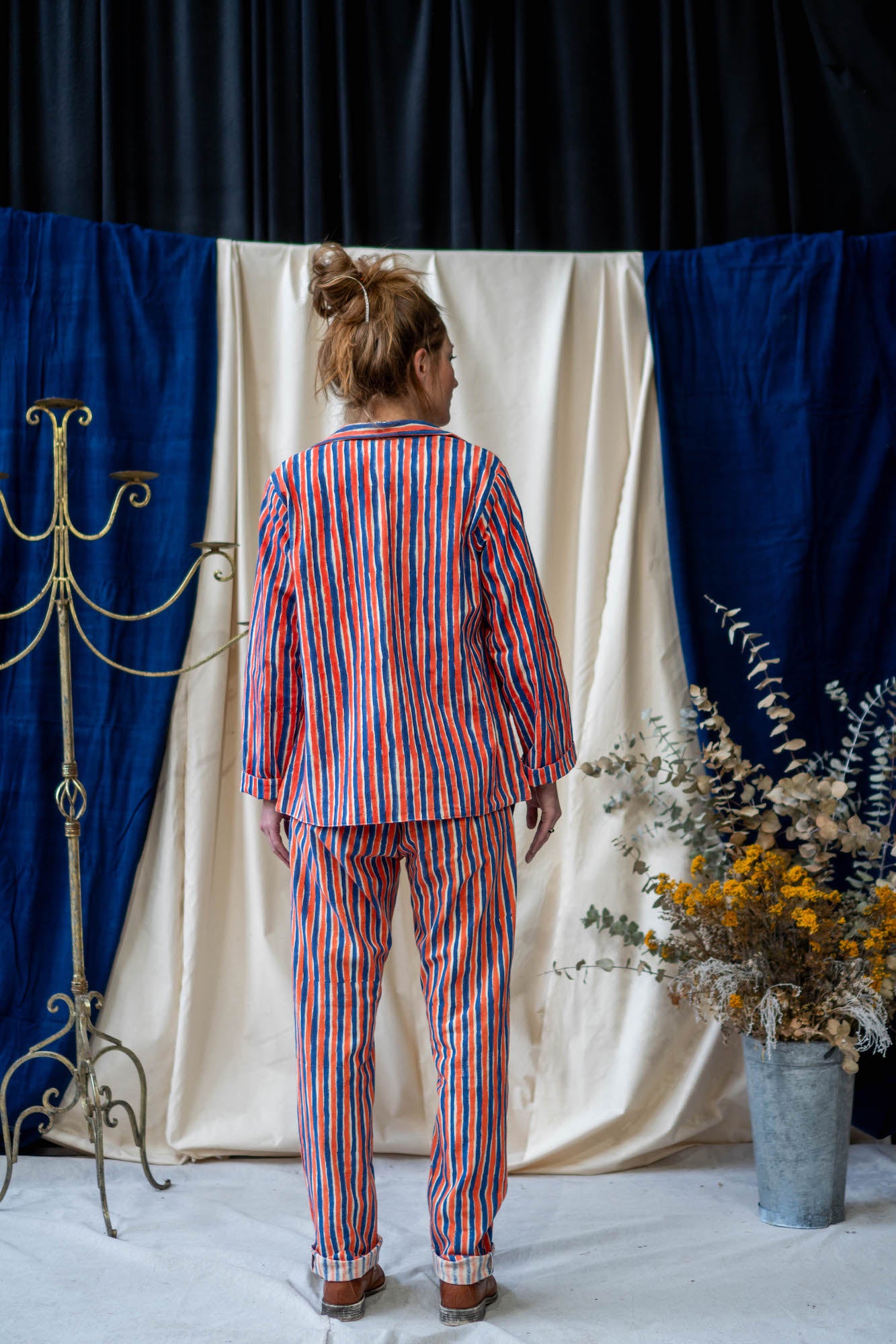 Featuring a crisp collar, two front pockets, and cropped hem to sit on the hips, this timeless piece is the perfect lightweight travel jacket to throw over your daytime outfit as the sun is going down at a picnic or layered over a basic skivvy or t-shirt. The wrist hem can easily be rolled to create a cuff, as the jacket is lined in matching hand-loomed khadi cotton making it breathable and fresh feeling on the skin.