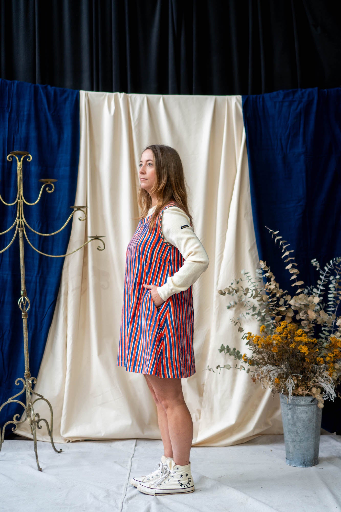 The bold hand-block printed Stripe has become a signature of The ANJELMS Project, as we believe that stripes are timeless and playful, which is everything a garment should be! They are a nod to Gaelle’s French heritage and work to elongate the silhouette of the garment. Made with our midweight Khadi cotton for extra breathability and ultimate comfort all year around. Tapered in a soft A-line, allowing ease of movement. Team it up with statement earrings and you will be ready to take on any occasion!