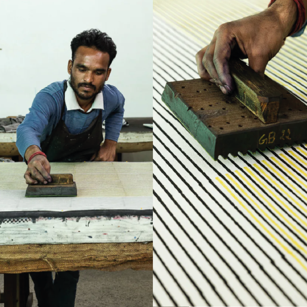 Our prints begin as digital designs in Western Australia, then come to life in India, where Mr. Satnaryan hand-carves wooden blocks and master printer Pawan applies each design with care and precision — creating textiles that are as ethical as they are beautiful.