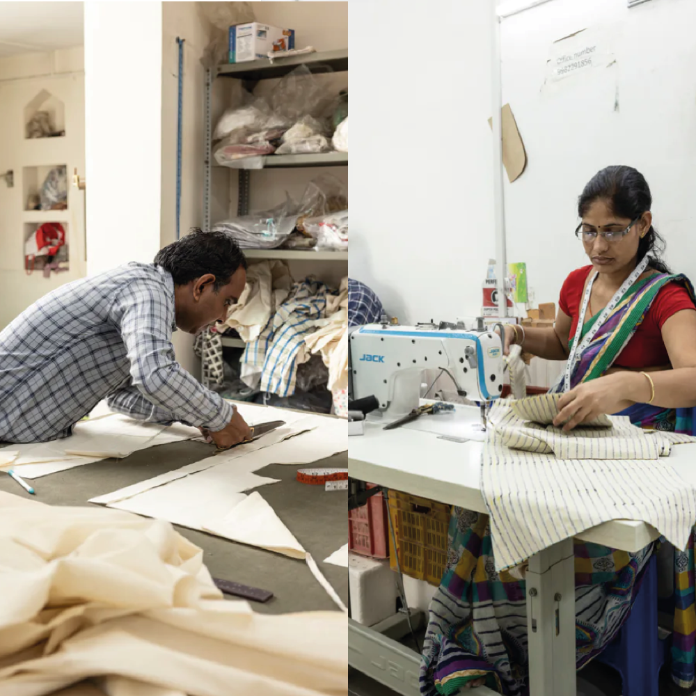 After living in India for many years, Fiona is now based back in Australia and running the logistical side of The Stitching Project remotely, while Praveen remains on the ground in India, managing the workers and employing and training new recruits.