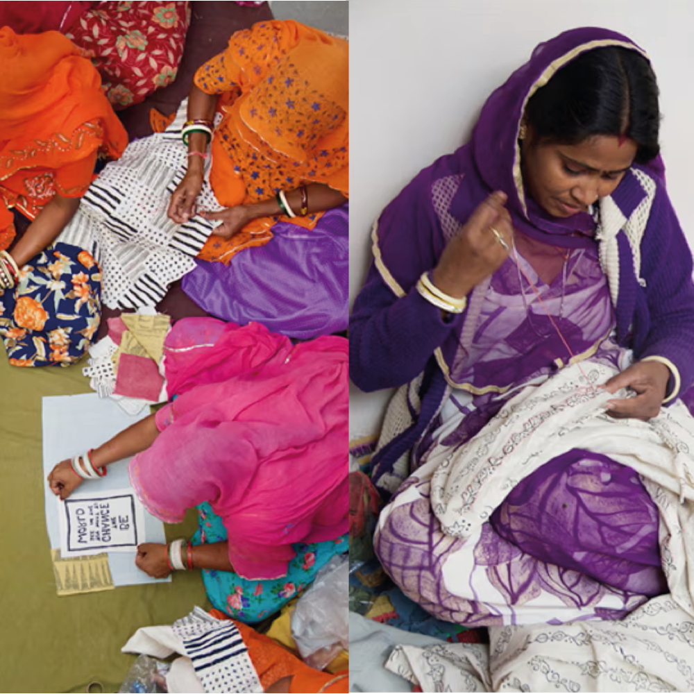 Through this initiative, they receive training, fair income, and the flexibility to work from home, allowing them to support their families while preserving traditional handcraft. Beyond skill-building, the program fosters connection and friendship across castes, empowering women to create both beautiful textiles and lasting change within their communities.