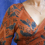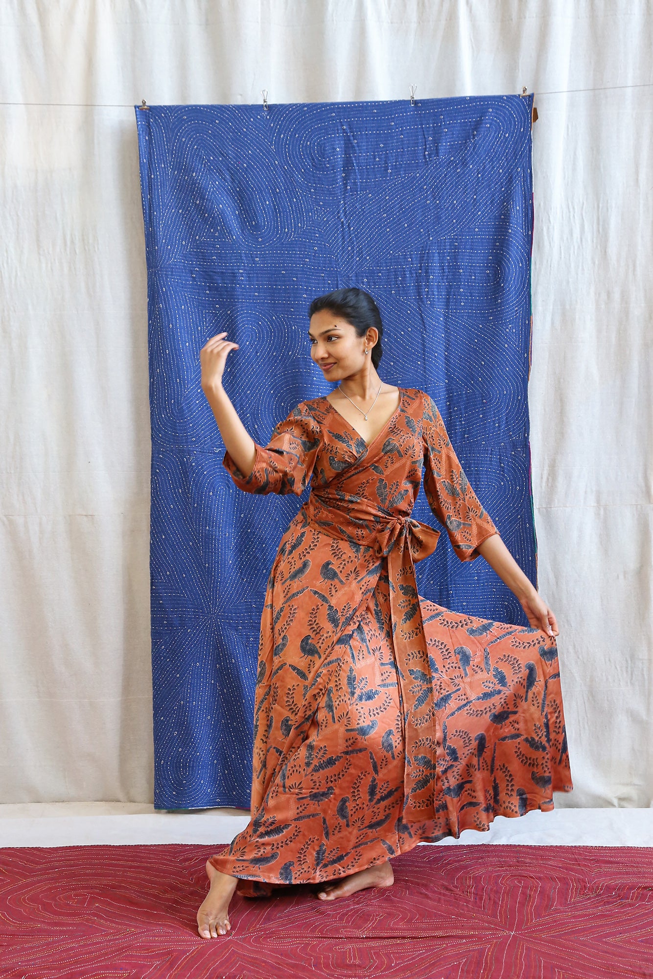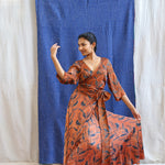 Crafted from 100% soft modal-silk blend featuring natural plant-based pigments and traditional Ajrakh block printing by Suffiyan Khatri.
