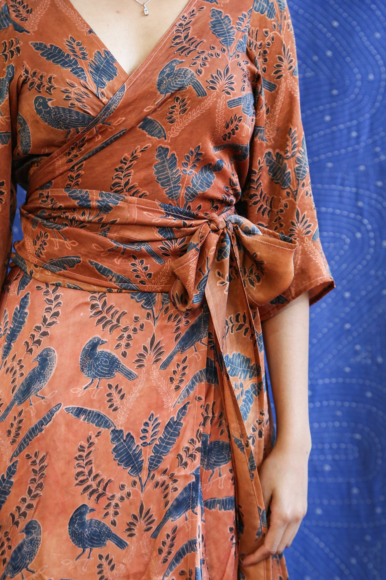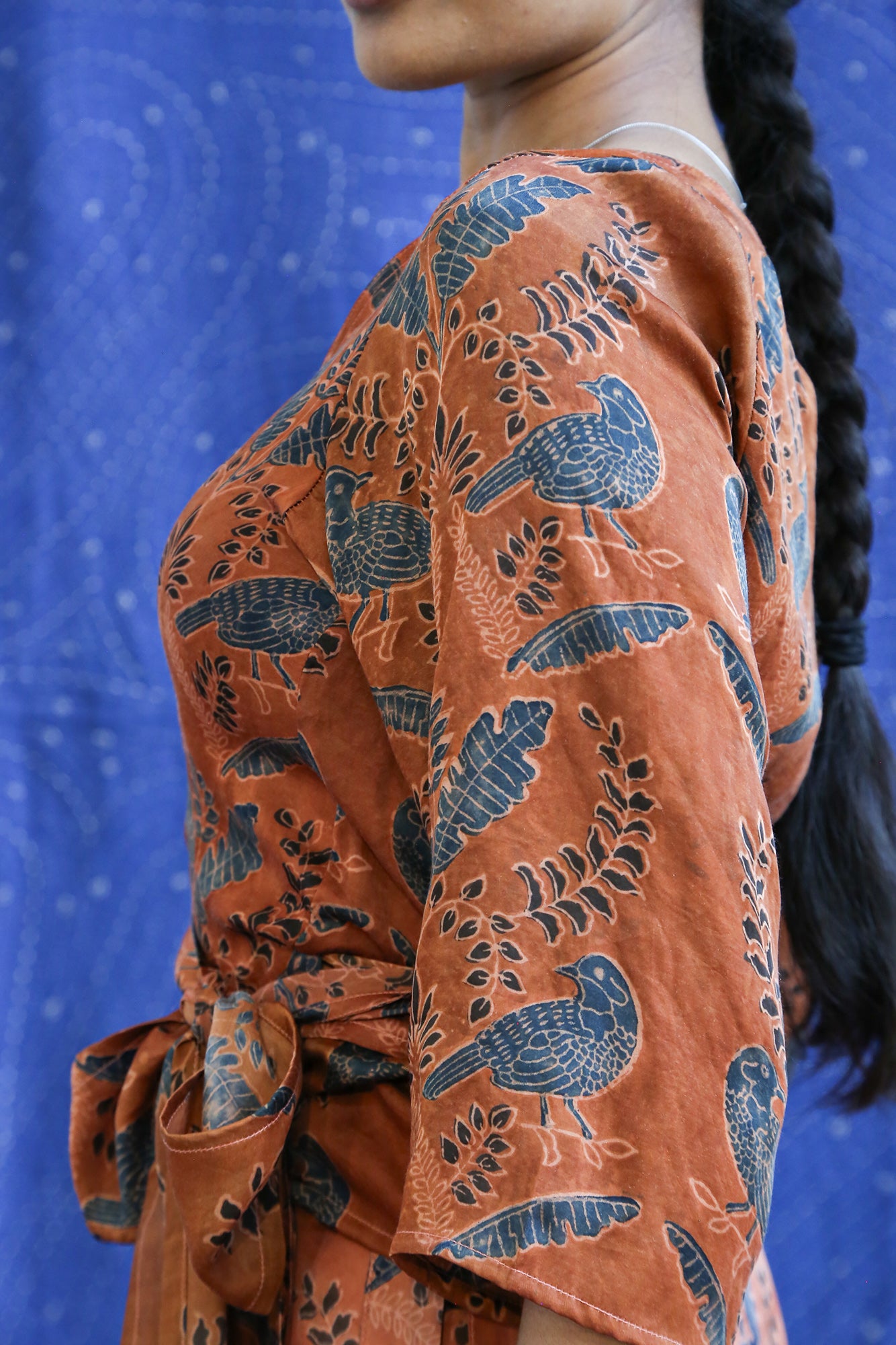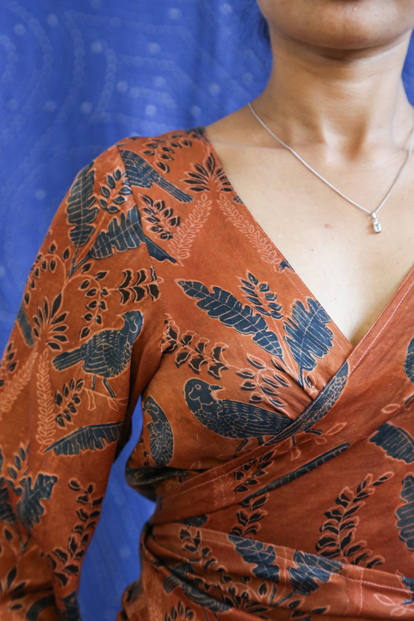 Elevate your wardrobe with our exquisite Wrap Tie Top, crafted in the workshop of master printer Sufiyan Khatri. Equipped with a long tie belt to allow you to tie it up at the front with a bow feature, or at the back with a simple tie. It sits on top of the hip to give you the comfort and coverage for everyday wear or tie it slightly higher under the bust line to let your midriff bask in the sun.