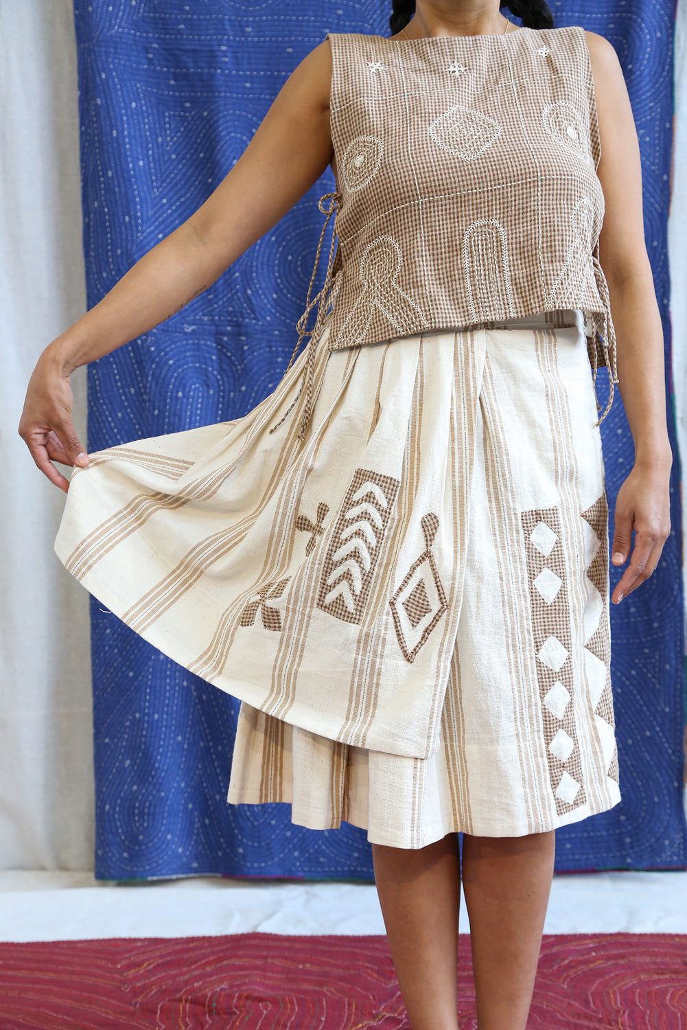 A playful, textured silhouette inspired by traditional Kedia tops. The double-layer pleated design combines movement, comfort, and artisanal detail, making it a versatile and handcrafted wardrobe essential.