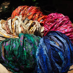 The Stitching Project recycles these Sarees accross India to create these upcycled yarns in the hope of saving them from landfill and giving them a second chance instead. Perfect for knitting, crochet, patchworking and bias binding, or whatever your mind can imagine!