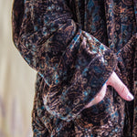 After washing, avoid wringing it out to preserve the delicate textile quality and lay it flat or hang to air dry in a shaded area to prevent fading and protect the fabric from the harsh effects of direct sunlight. Only iron on low heat.