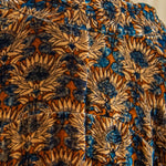 Ajrakh is a 4,500-year-old textile art, known for its intricate double-sided hand block printing and resist dyeing techniques. Using natural plant-based dyes like indigo and madder, each piece is created through a careful multi-step process, with layers of color added day by day using custom hand blocks to produce detailed, one-of-a-kind patterns.