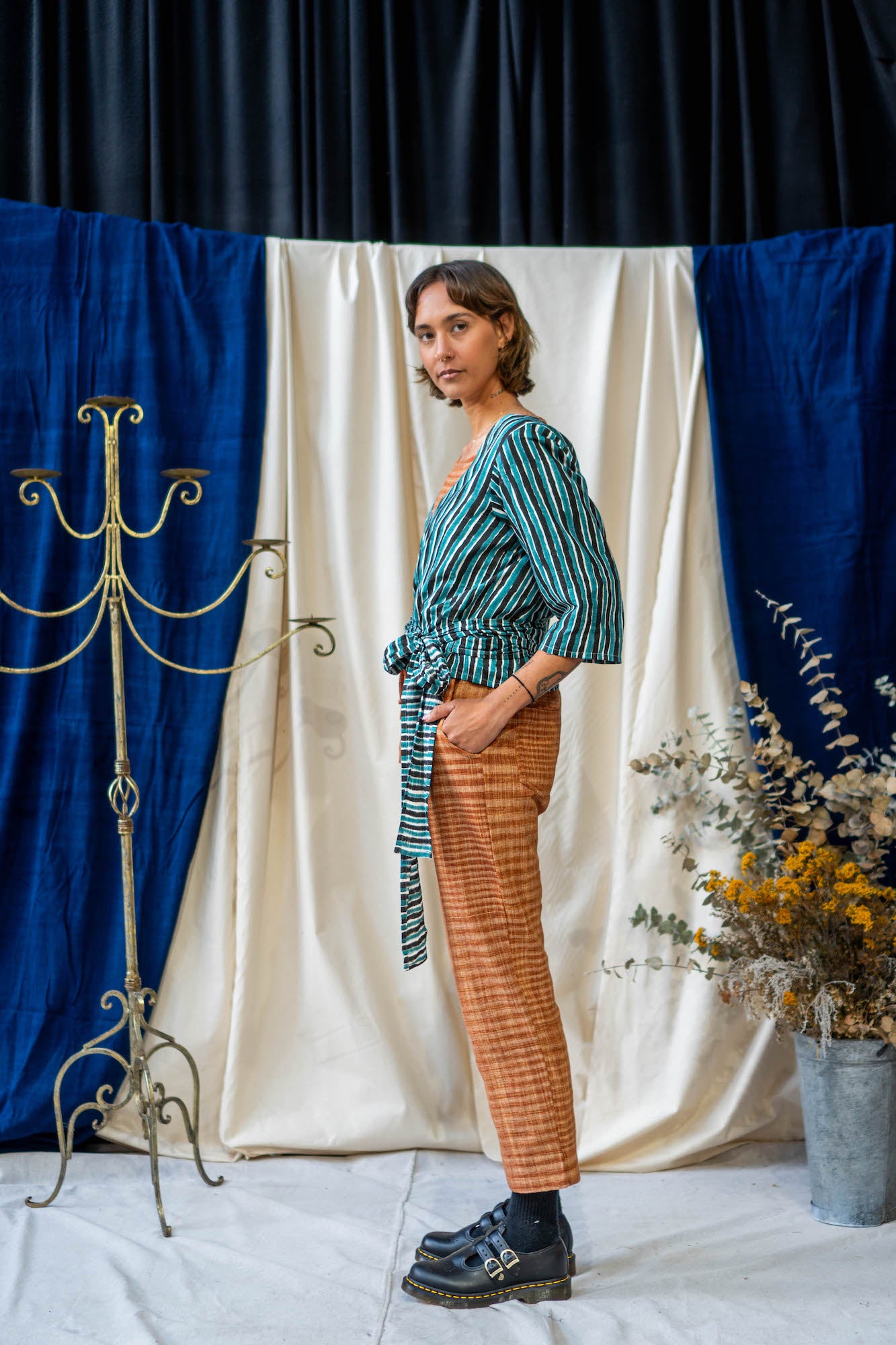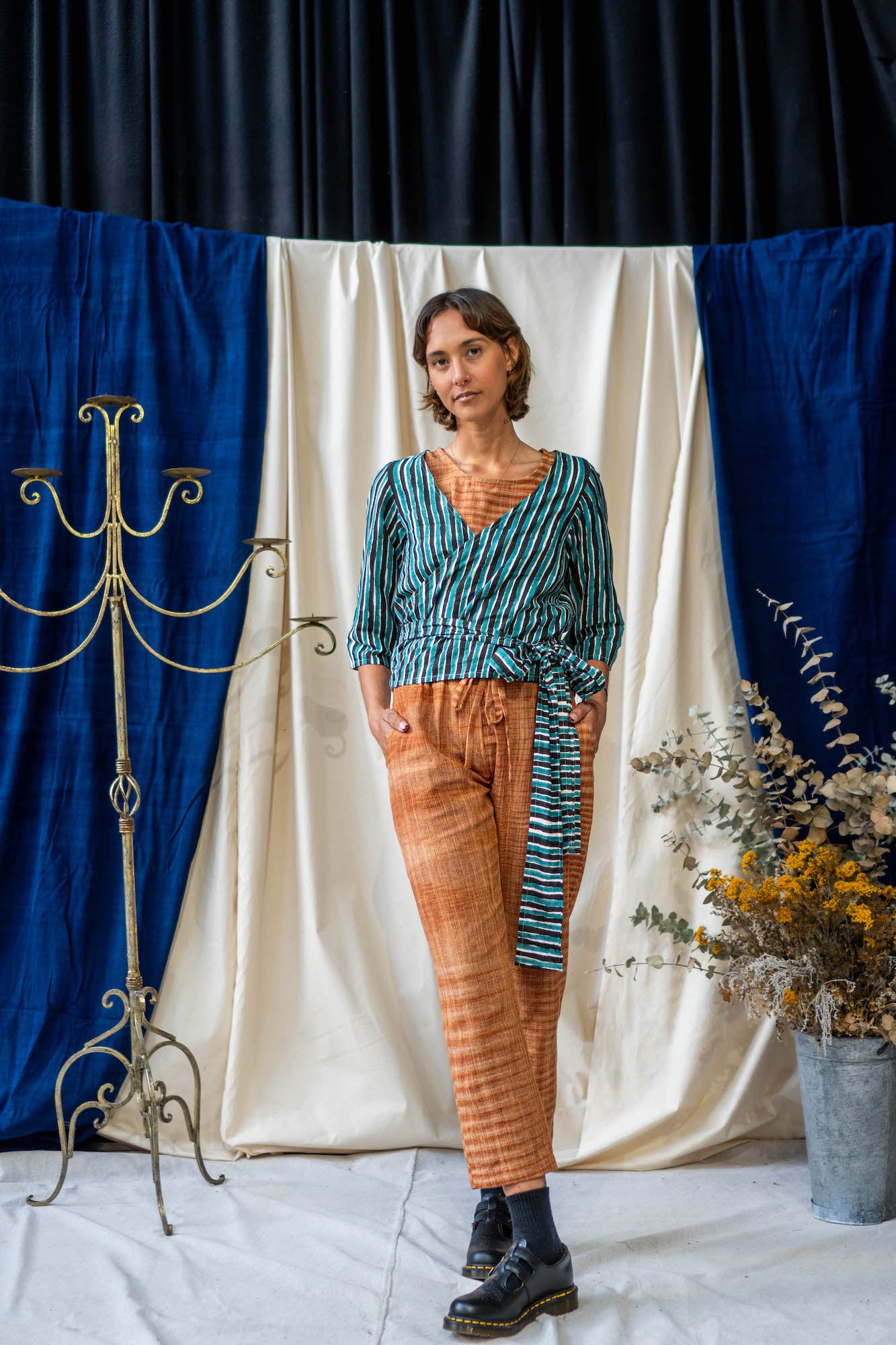 Our classic wrap top is back, and it is light and breathable as ever in our silk cotton for the season. This wrap top has a long tie belt to allow you to tie it up at the front with a bow feature, or at the back with a simple tie. It sits on top of the hip to give you the comfort and coverage for everyday wear or tie it slightly higher under the bust line to let your midriff bask in the sun!