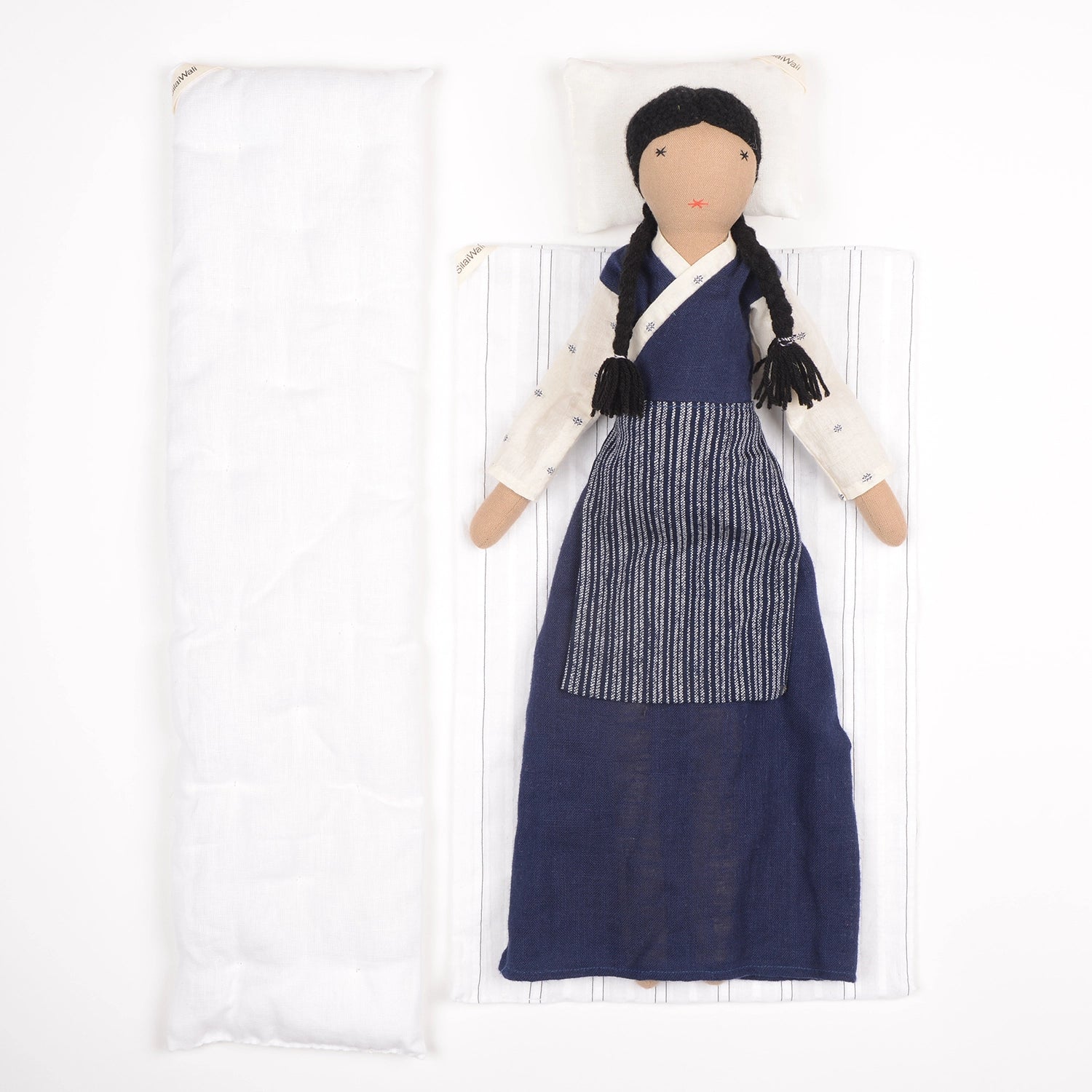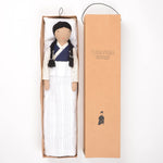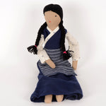 MATERIAL 100% cotton doll with polyfill, woollen hair and cotton bedding.