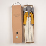 MATERIAL 100% cotton doll with polyfill, woollen hair and cotton bedding.
