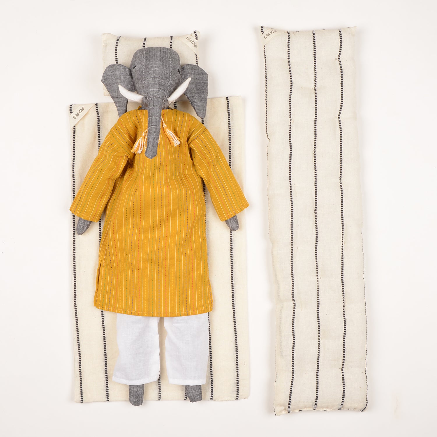 Mumba the Elephant, majestic and grand, Handcrafted with love by skilled Afghan hands. From waste fabric, a creation so rare, An embodiment of strength and beauty to share. Supporting sustainable income, artisans' pride, Mumba the Elephant, a masterpiece to reside.