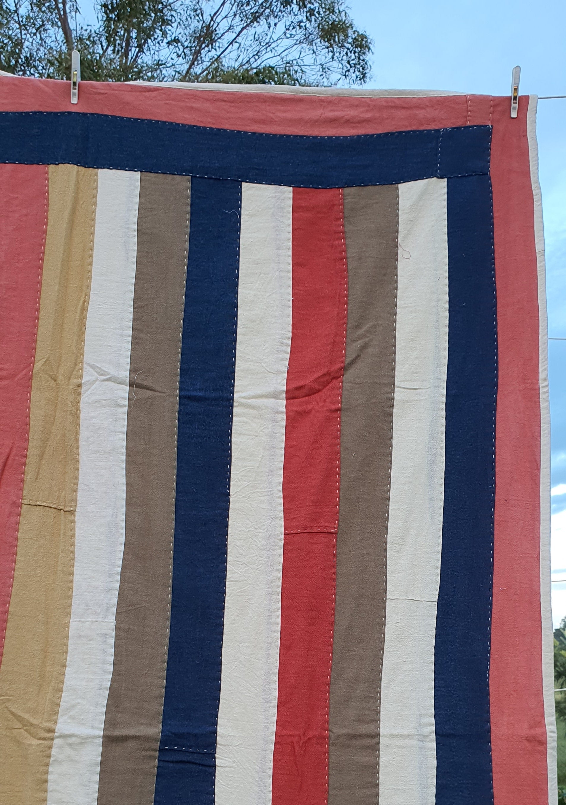 No two quilts are ever the same — the rhythmic, imperfect beauty of hand stitching gives each piece its own identity and soul. Treat yours with care, as you would a work of art — because that’s exactly what it is.