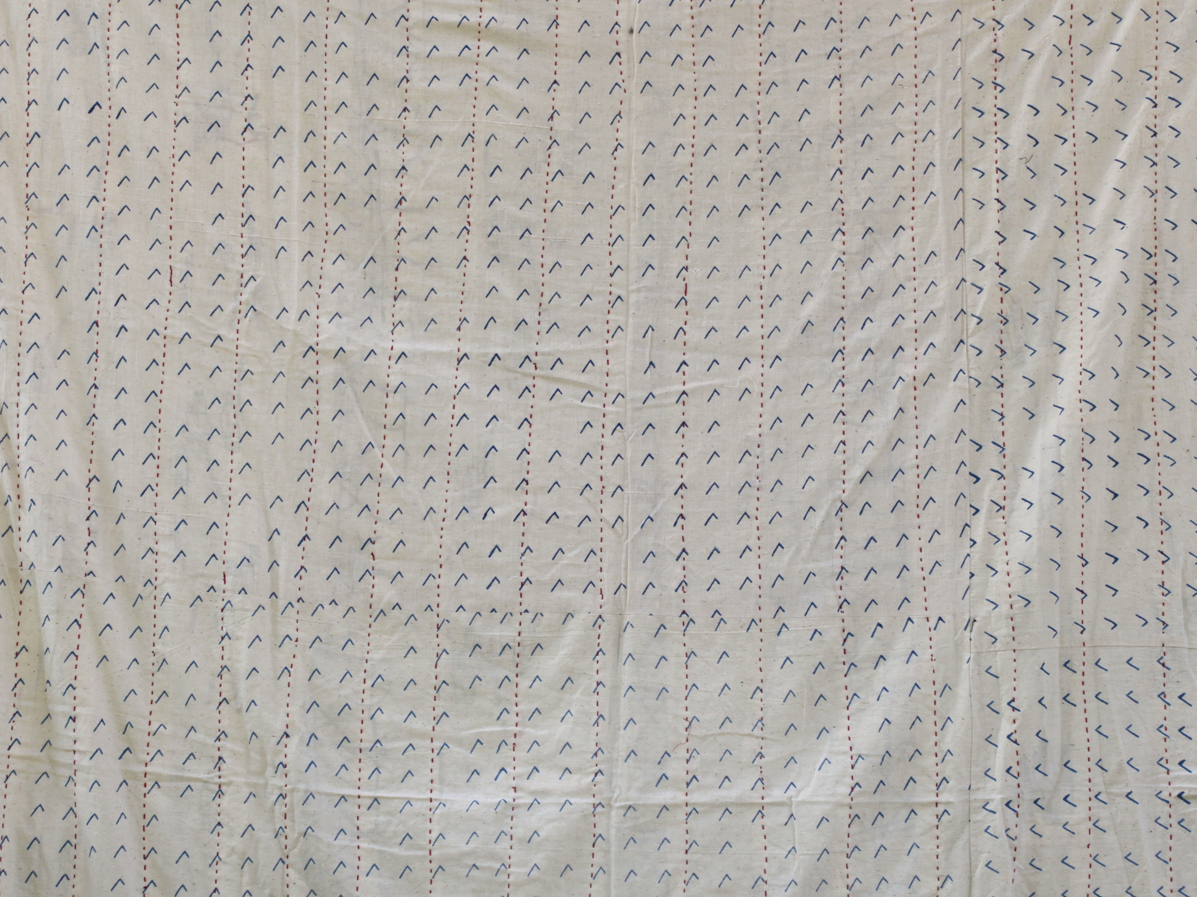 The reverse side is made of our tick print on light dhoti cotton with red stitch-work.