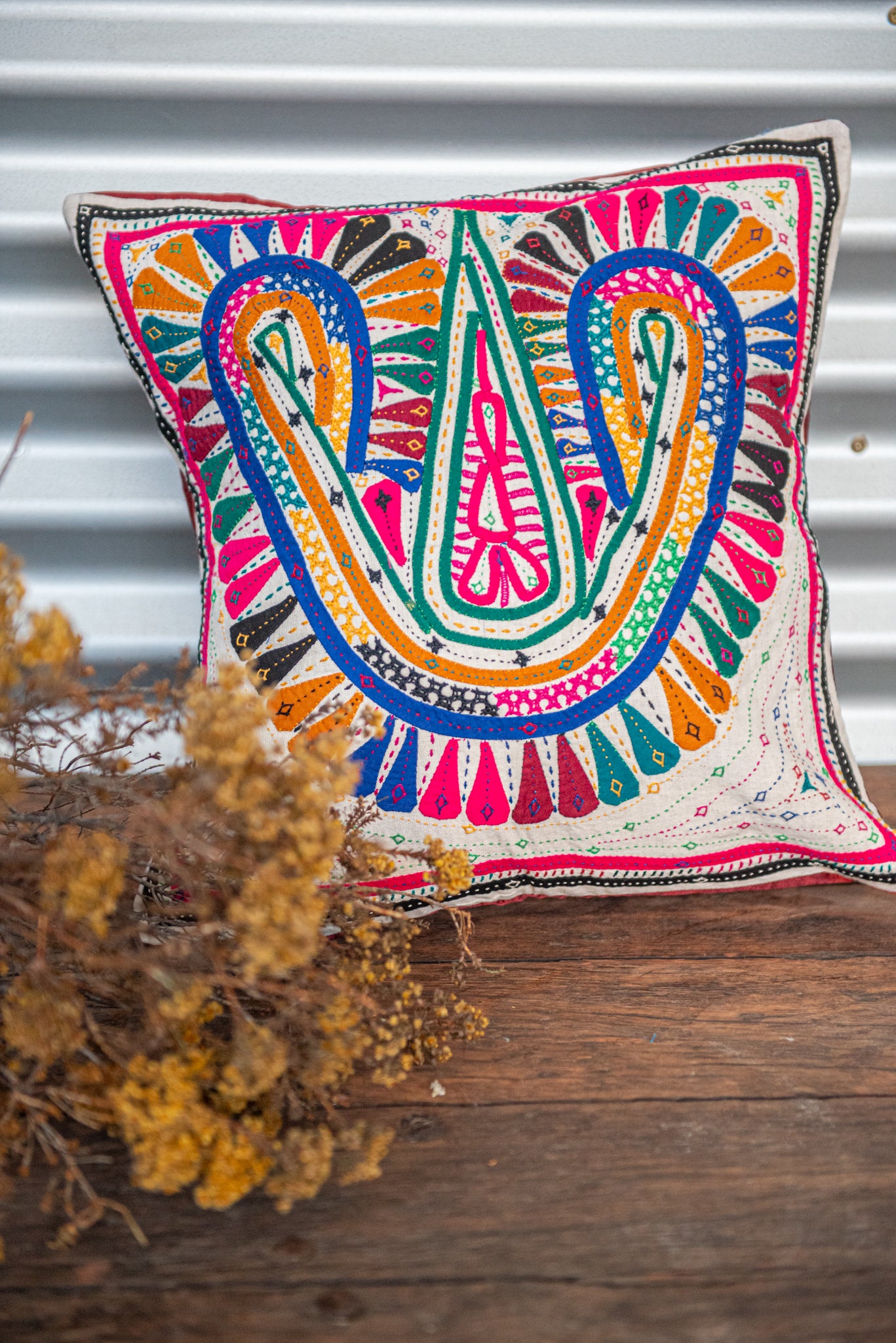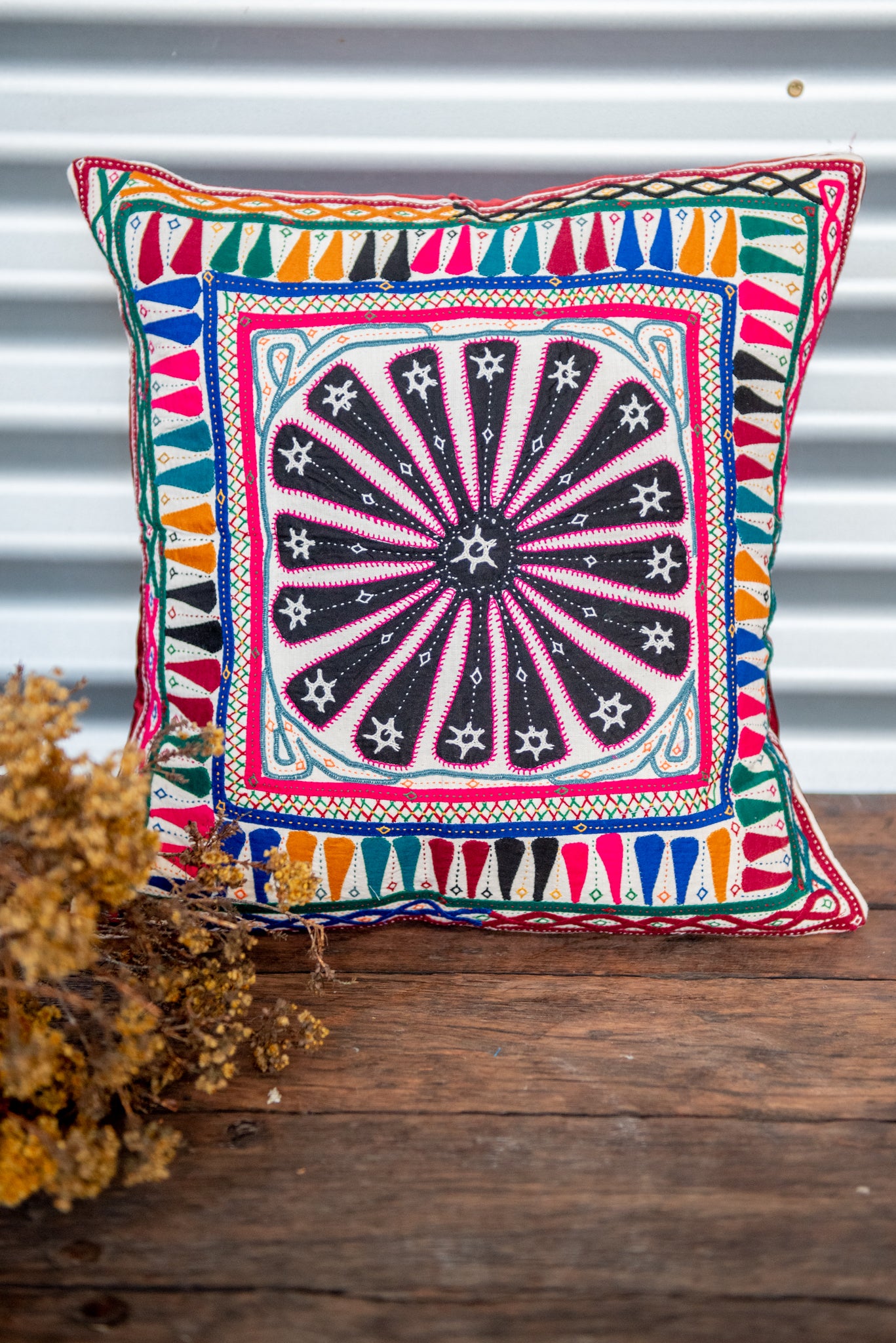 Introducing the Dhebariya Rabari Cushion, a beautifully handcrafted home accessory that brings the vibrant artistry of the Rabari community from Kutch, Gujarat, right into your living space. Expertly designed by skilled artisans, this cushion not only serves as a decorative piece but also embodies the rich cultural heritage and craftsmanship of the Rabari people.