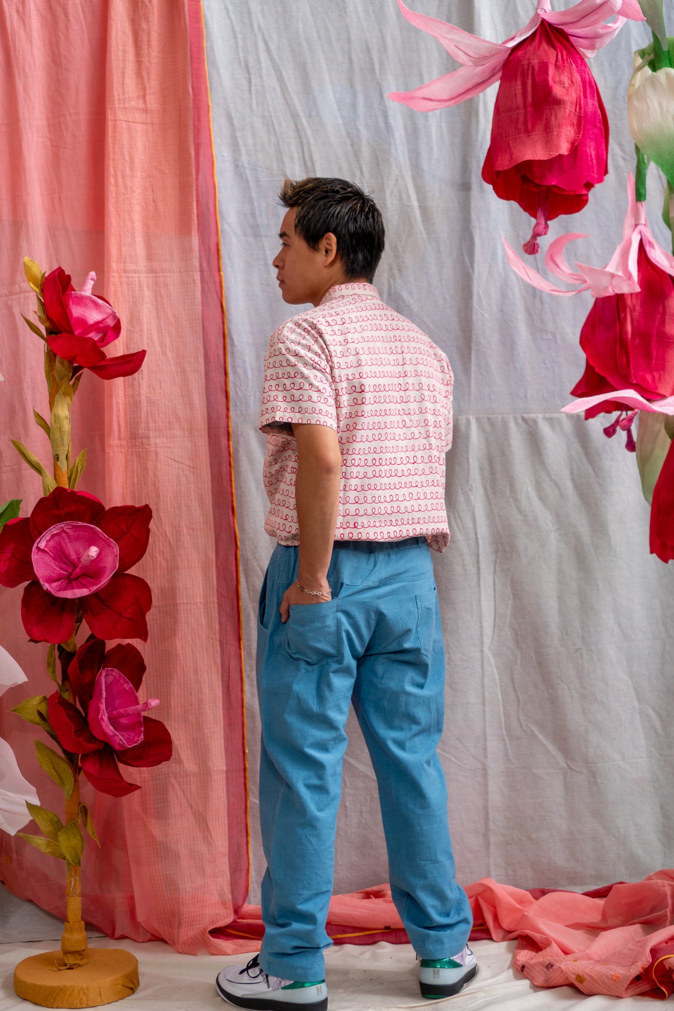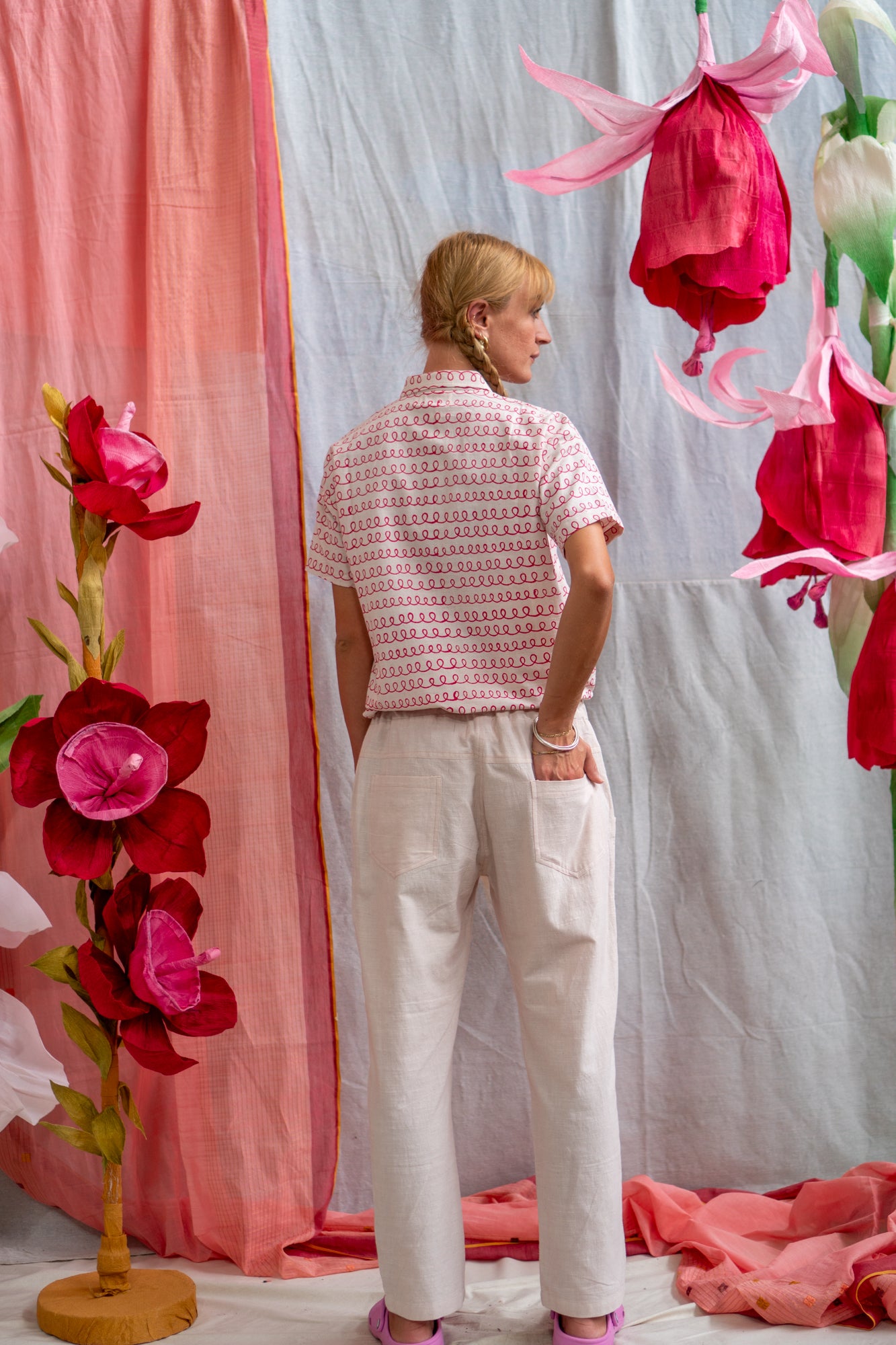 Madder Pale Pink – achieved by naturally plant dyeing the fabric with madder root.