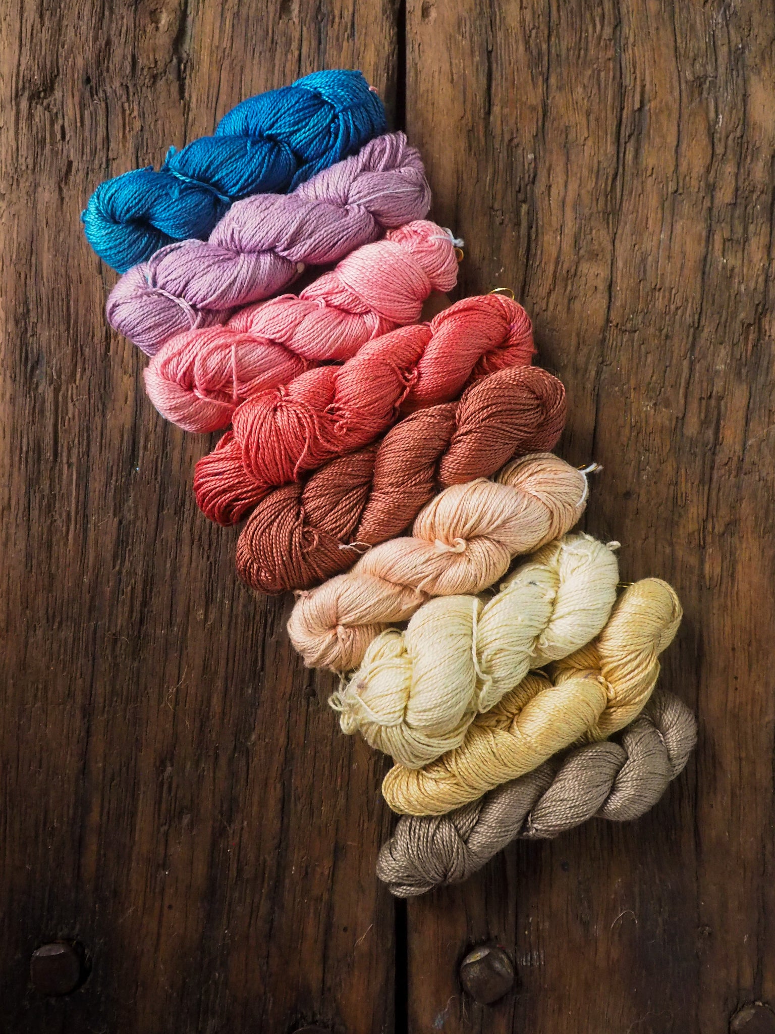 Each colour matches all our Khadi metrage fabrics as they are dyed in the same dyebaths by Praveen at The Stitching Project. It does not bleed and easy to use. The yarn has a slight sheen and does not snag easily.