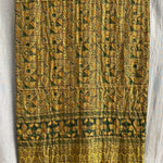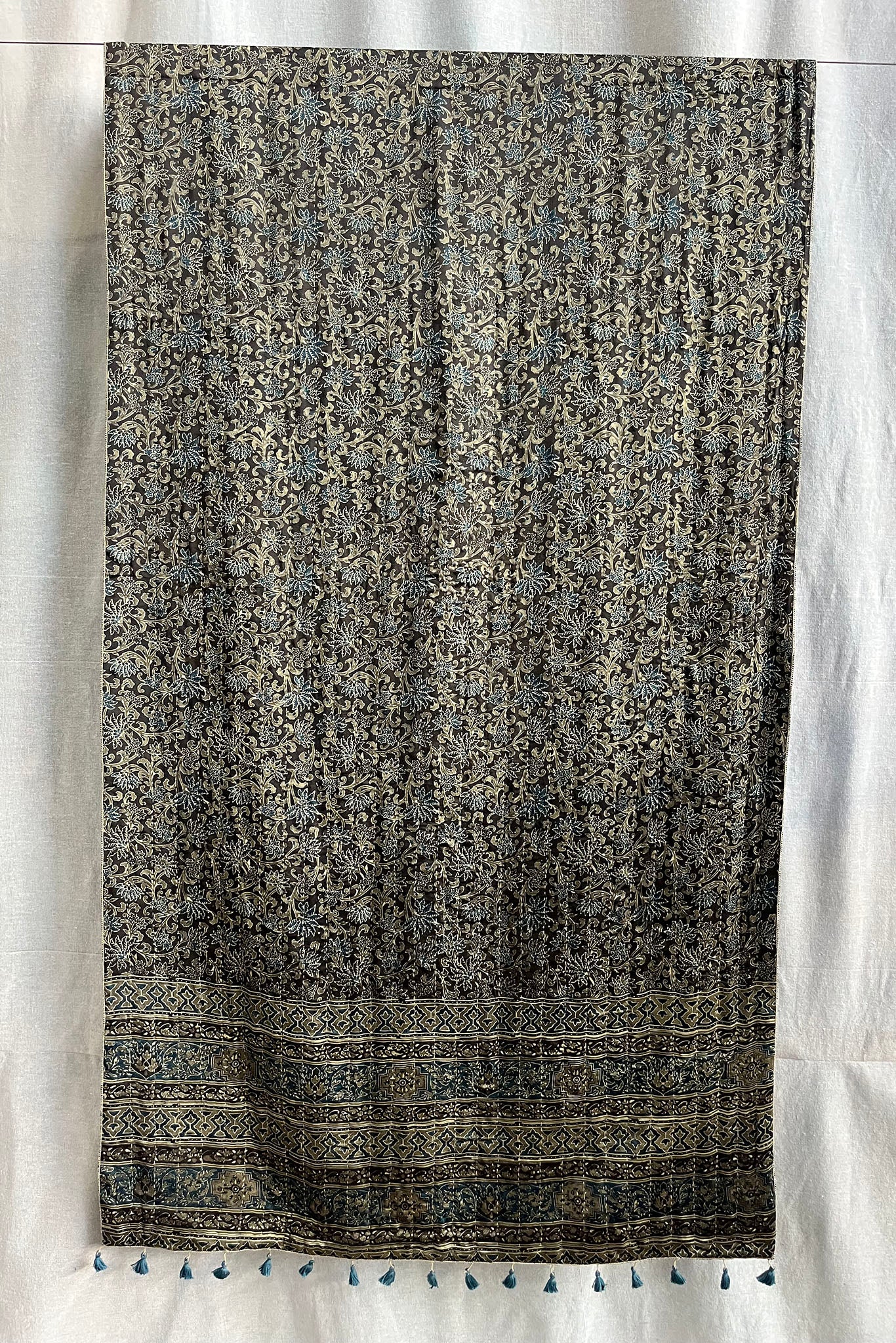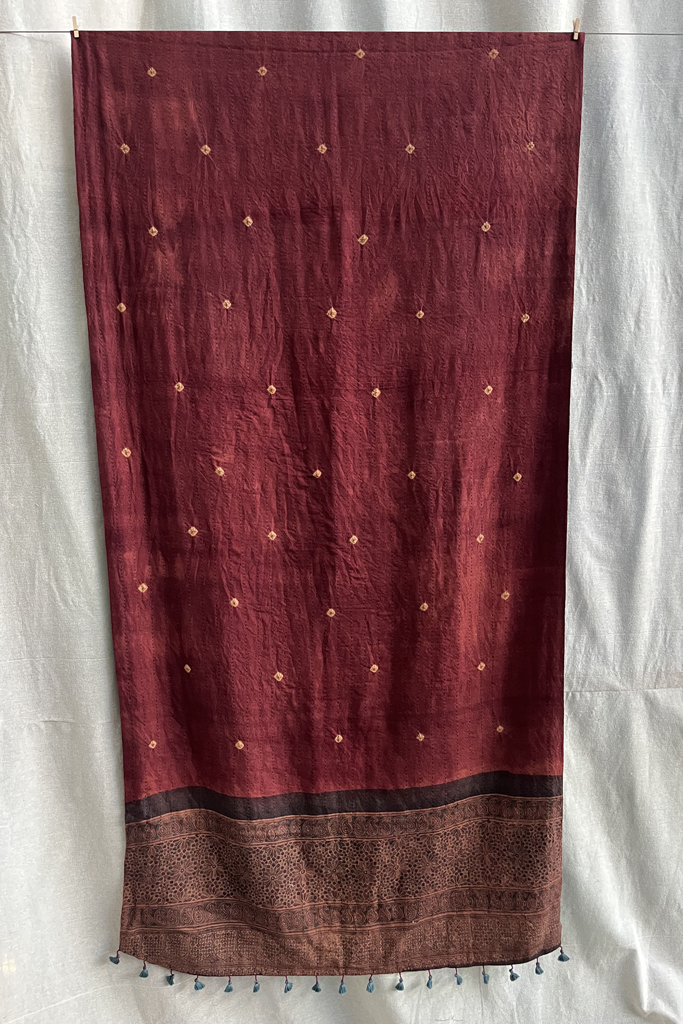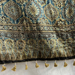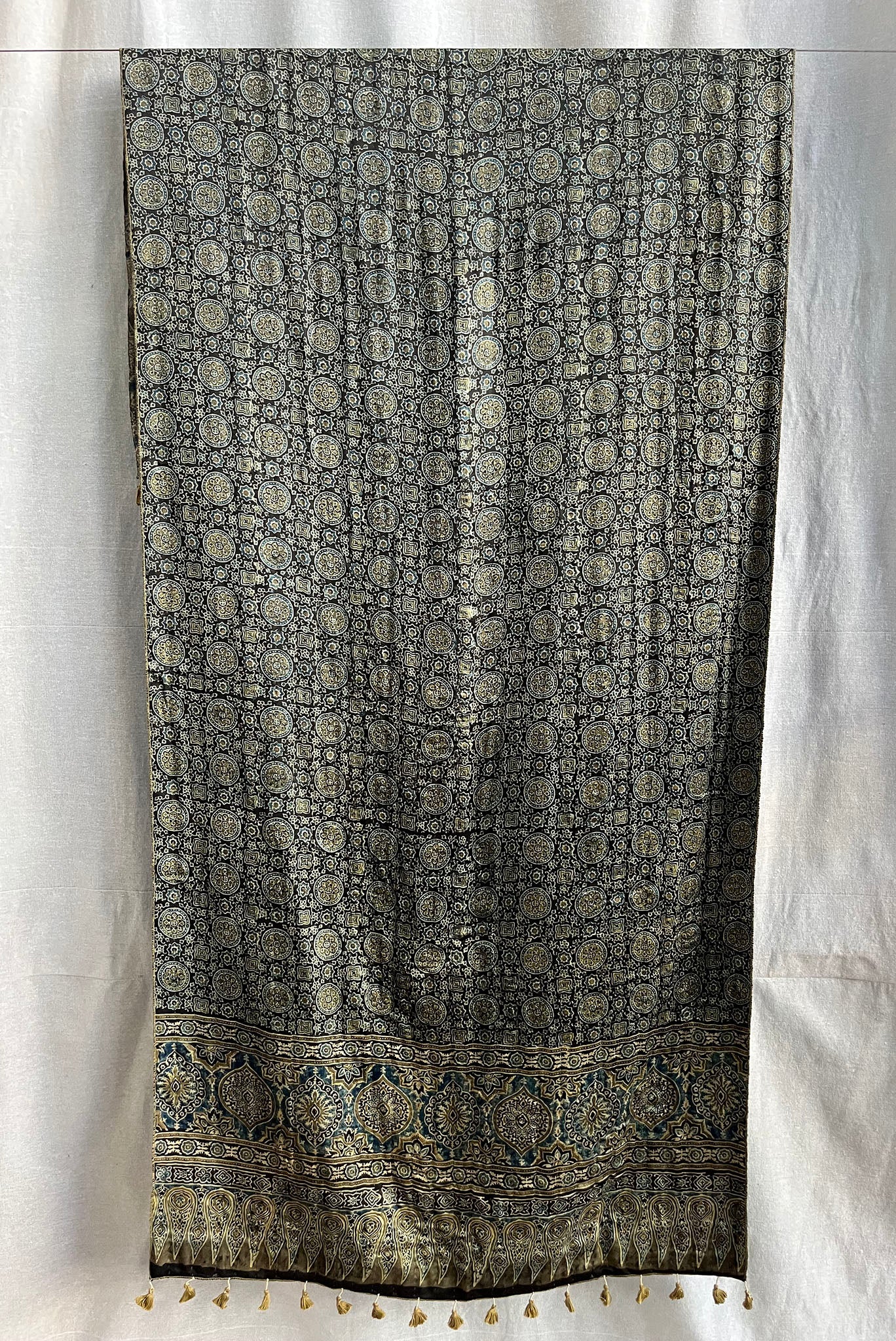 Ajrakh is a 4,500-year-old textile art, known for its intricate double-sided hand block printing and resist dyeing techniques. Using natural plant-based dyes like indigo and madder, each piece is created through a careful multi-step process, with layers of color added day by day using custom hand blocks to produce detailed, one-of-a-kind patterns.