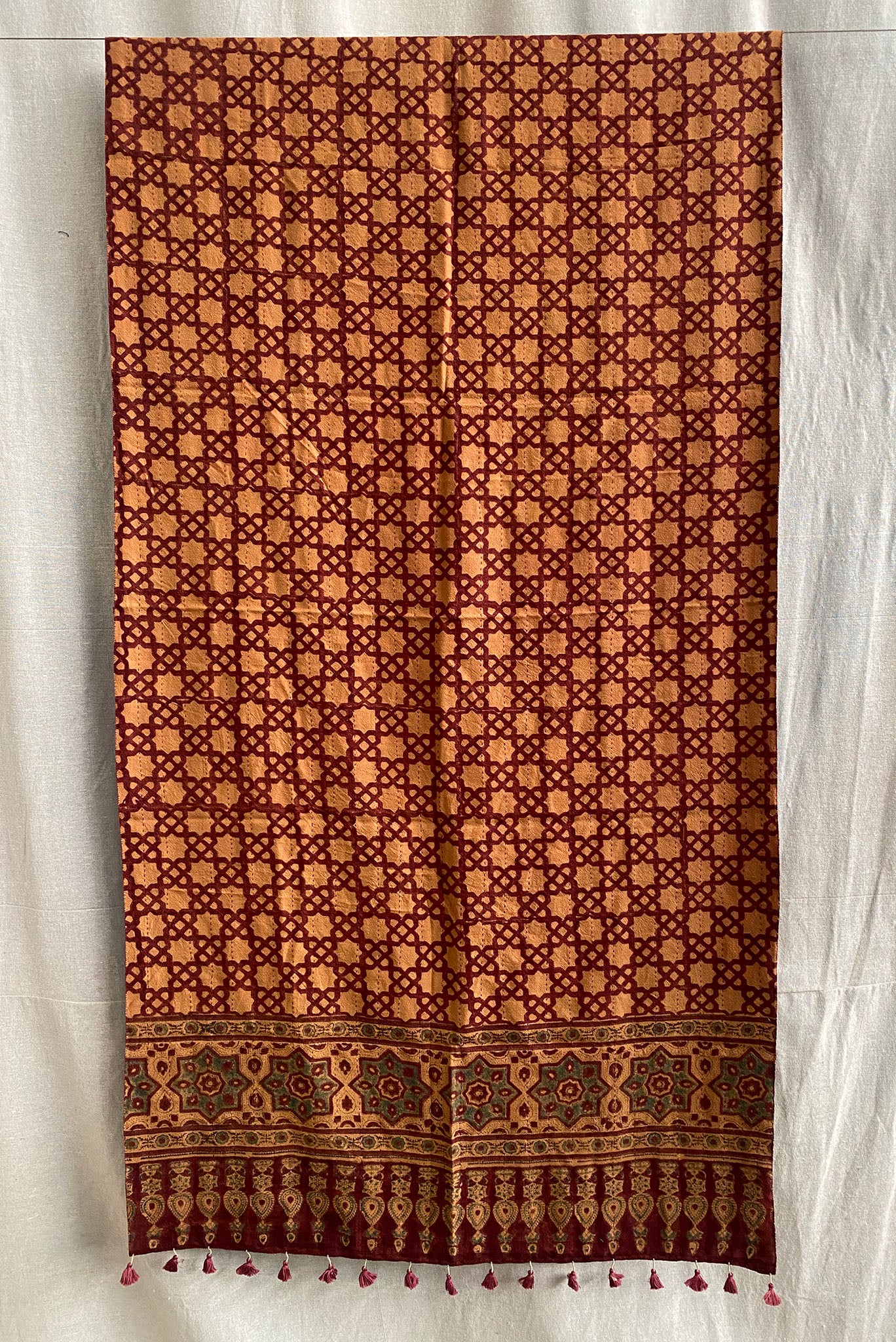 The Ajrakh Collection scarves are more than just accessories; they embody the fusion of traditional artistry and modern fashion. With each scarf meticulously handcrafted using sustainable materials and the ancient Ajrakh technique, these scarves offer not only a style statement but also a connection to the rich cultural heritage of Gujarat.