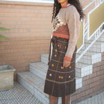 The Tara Skirt is an A-line skirt that blends comfort, versatility, and heritage beautifully. Featuring an elasticated waist at the back and a sash, it fits a range of sizes effortlessly.