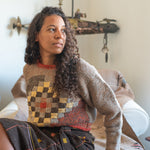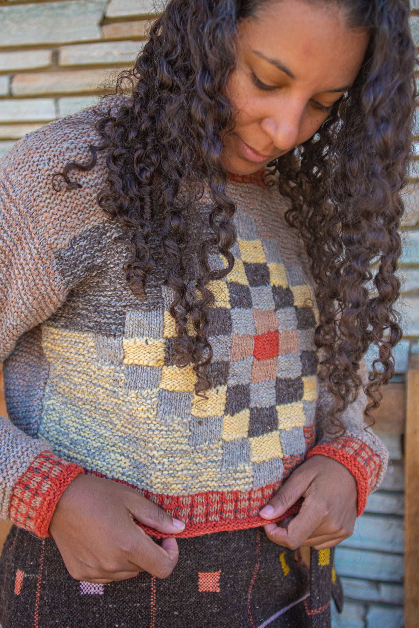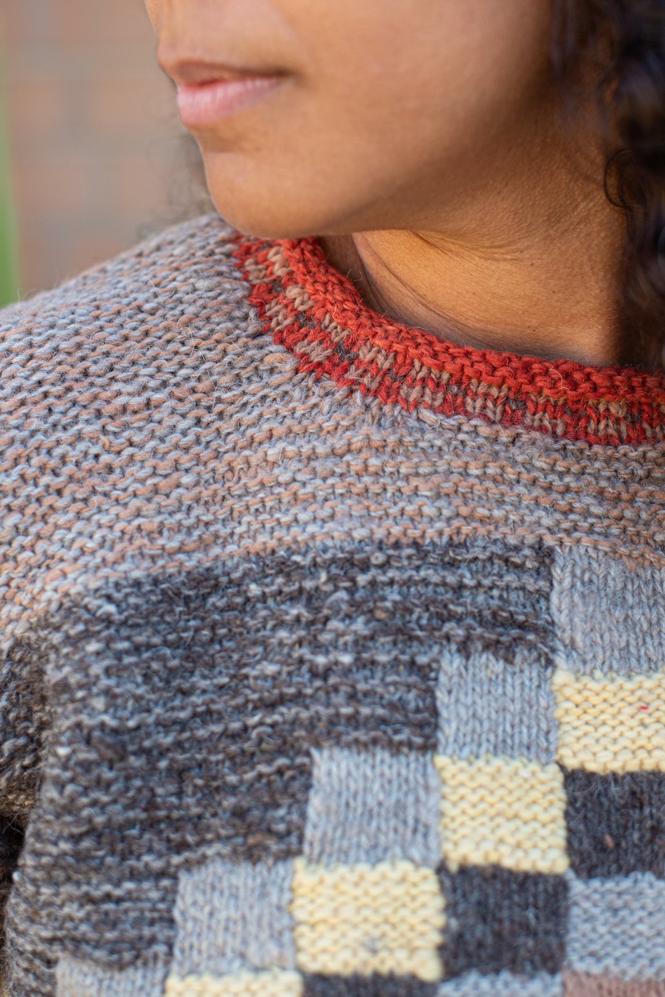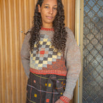 The vibrant Chashm Crop Jumper beautifully reinterprets the traditional Chashm motif into modern knitwear. Handknit with hanspun and naturally dyed yarn, it features scaled patterns, rich textures, and bold hues. Perfect for layering or as a statement piece.