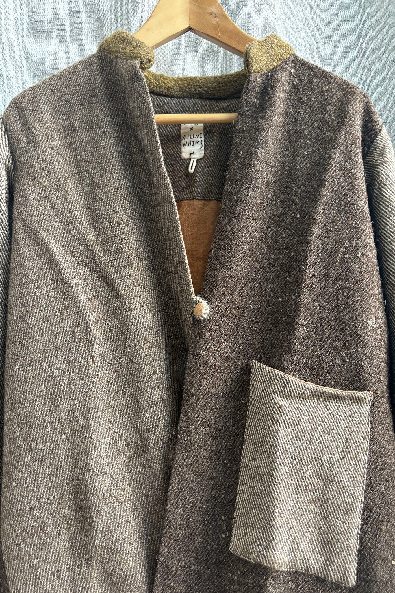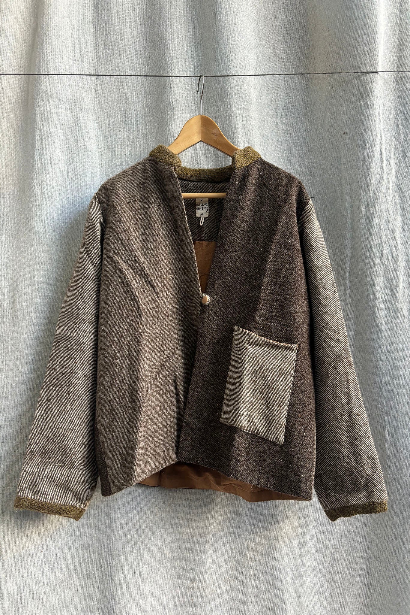 Naturally dyed and handwoven, the Kasha Jacket blends traditional craftsmanship with a modern edge. Its short, fitted cut and clean collar make it easy to style with anything. Each panel is a different hue, giving it a unique, patchwork feel. With thoughtful pocket detailing and timeless design, it's a versatile, wearable piece of art.