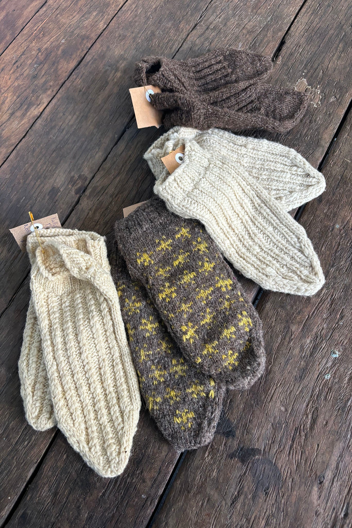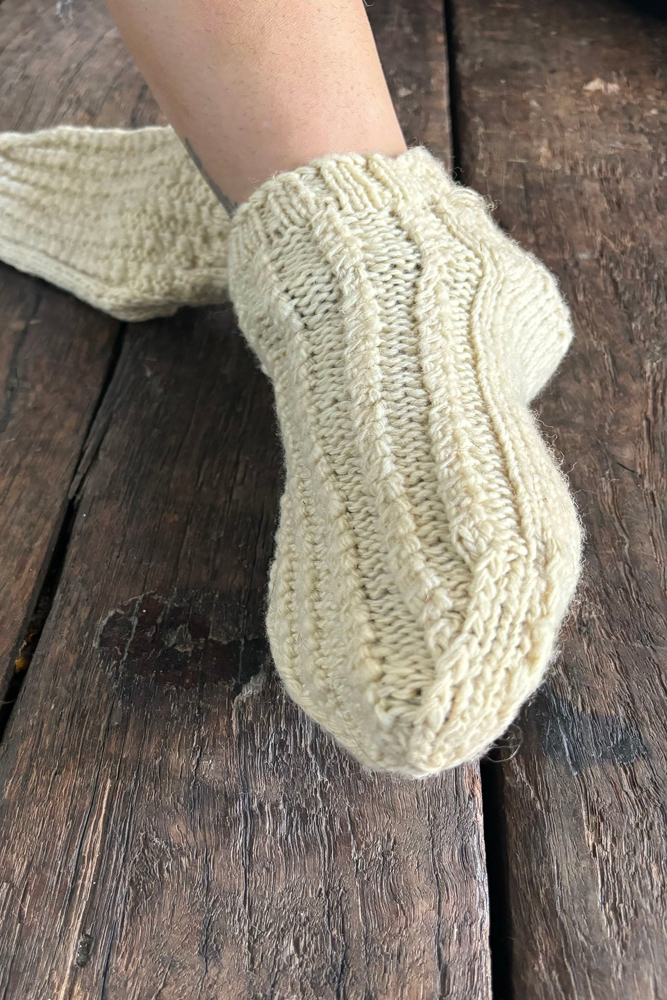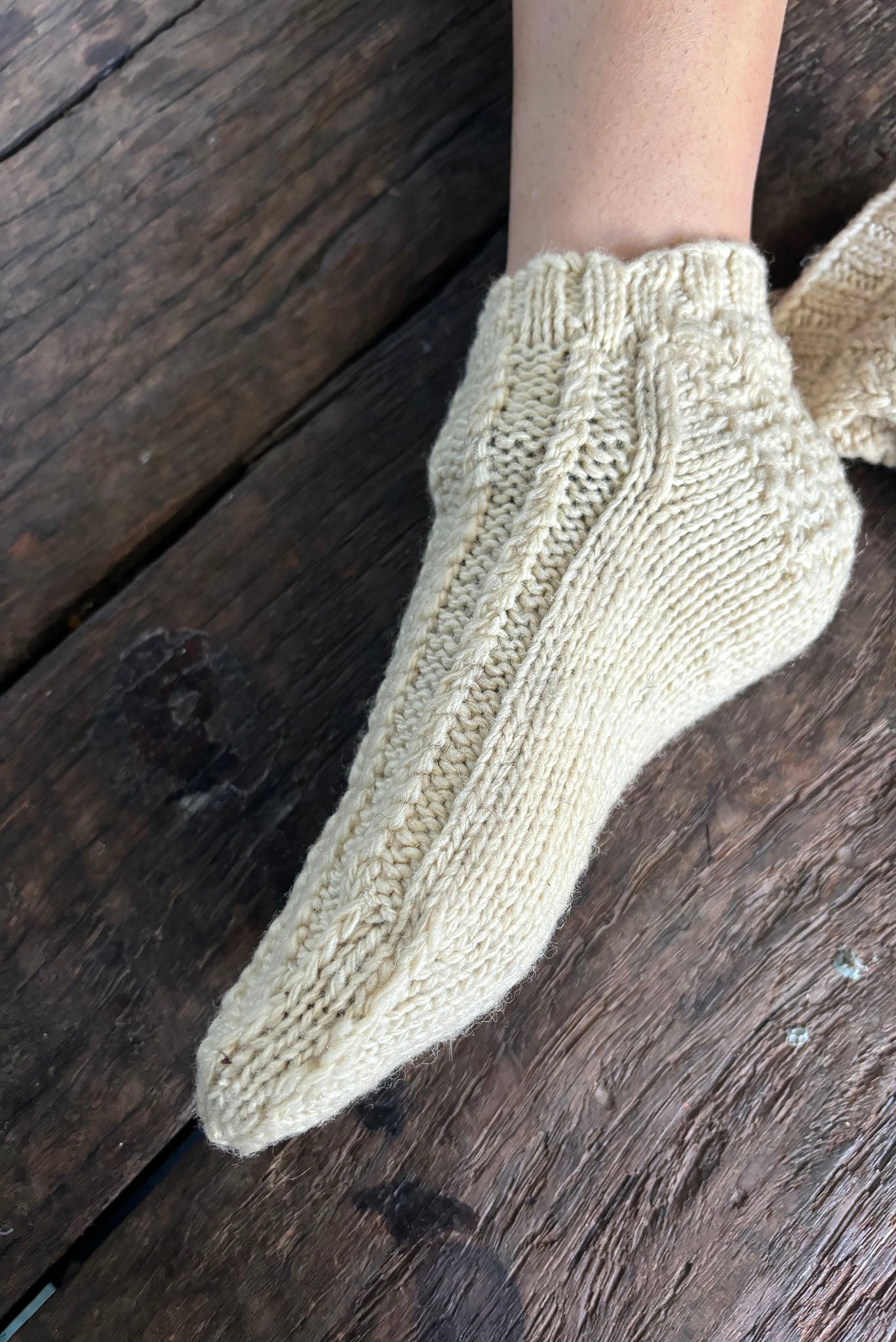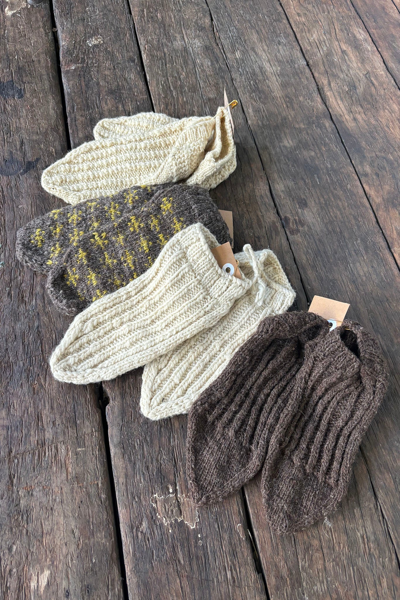 The Mojiri Motif Socks, are handknitted from soft, durable wool, these socks feature motifs or knitted details. Warm, comfortable, and unique—each pair is one of a kind.
