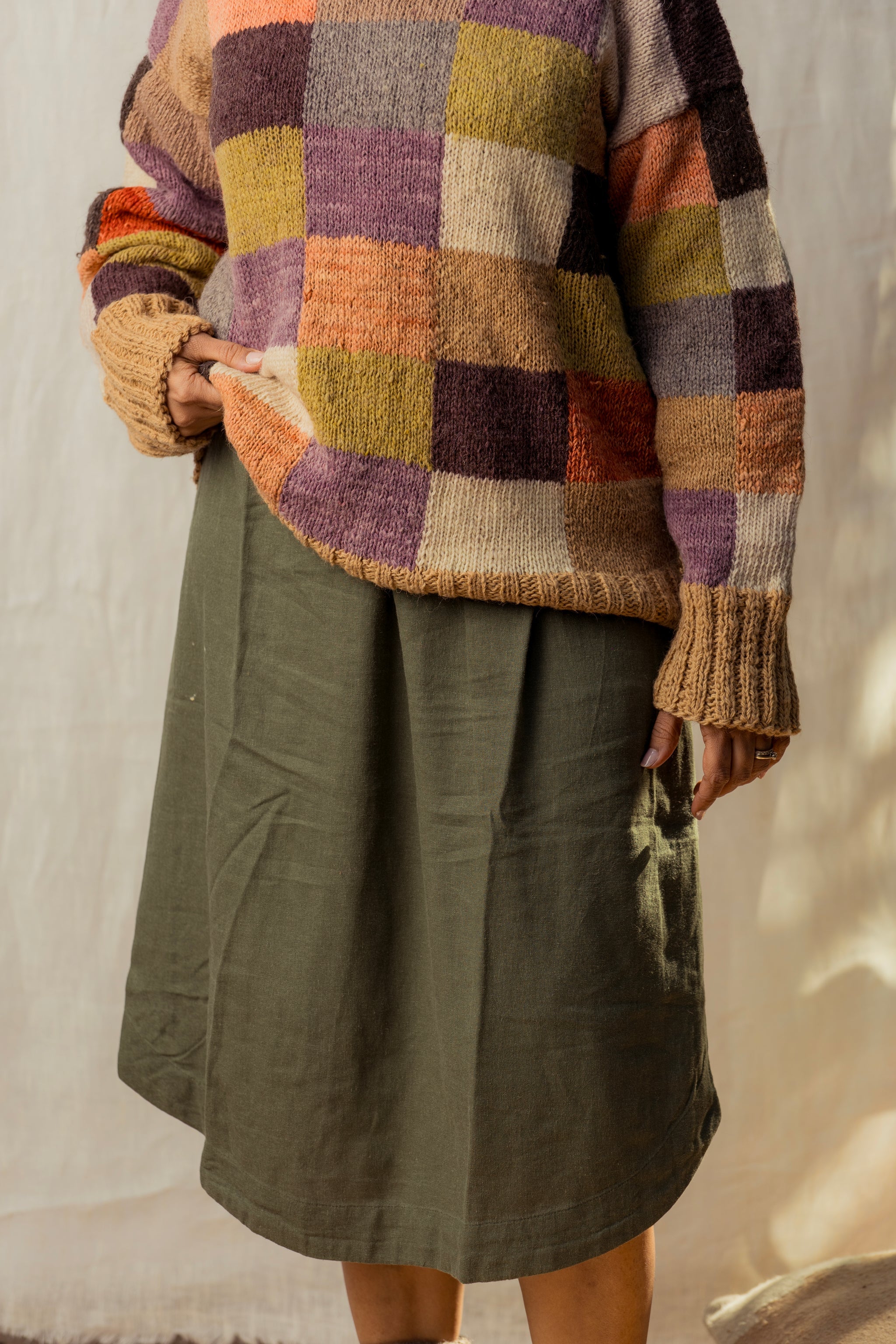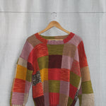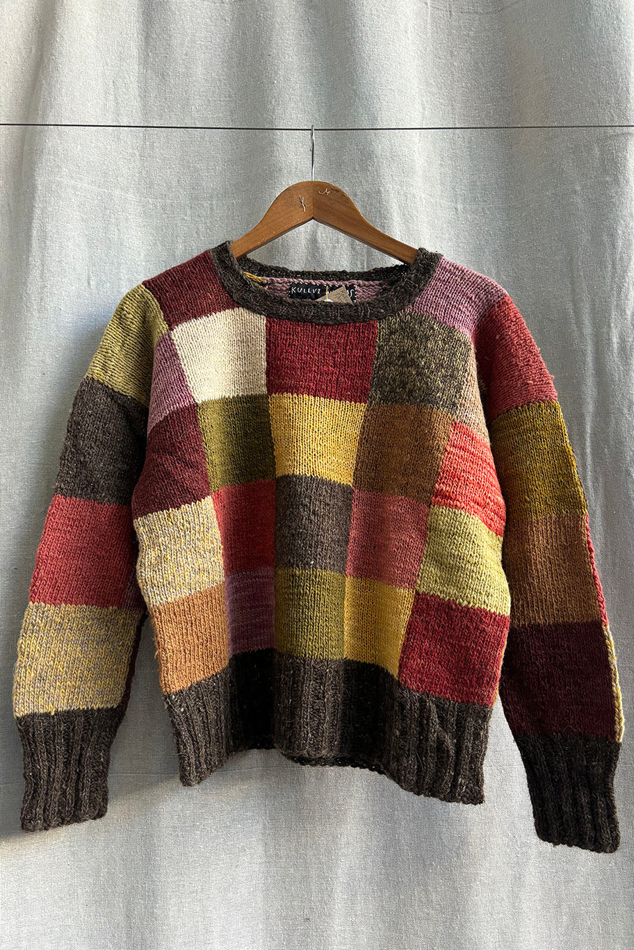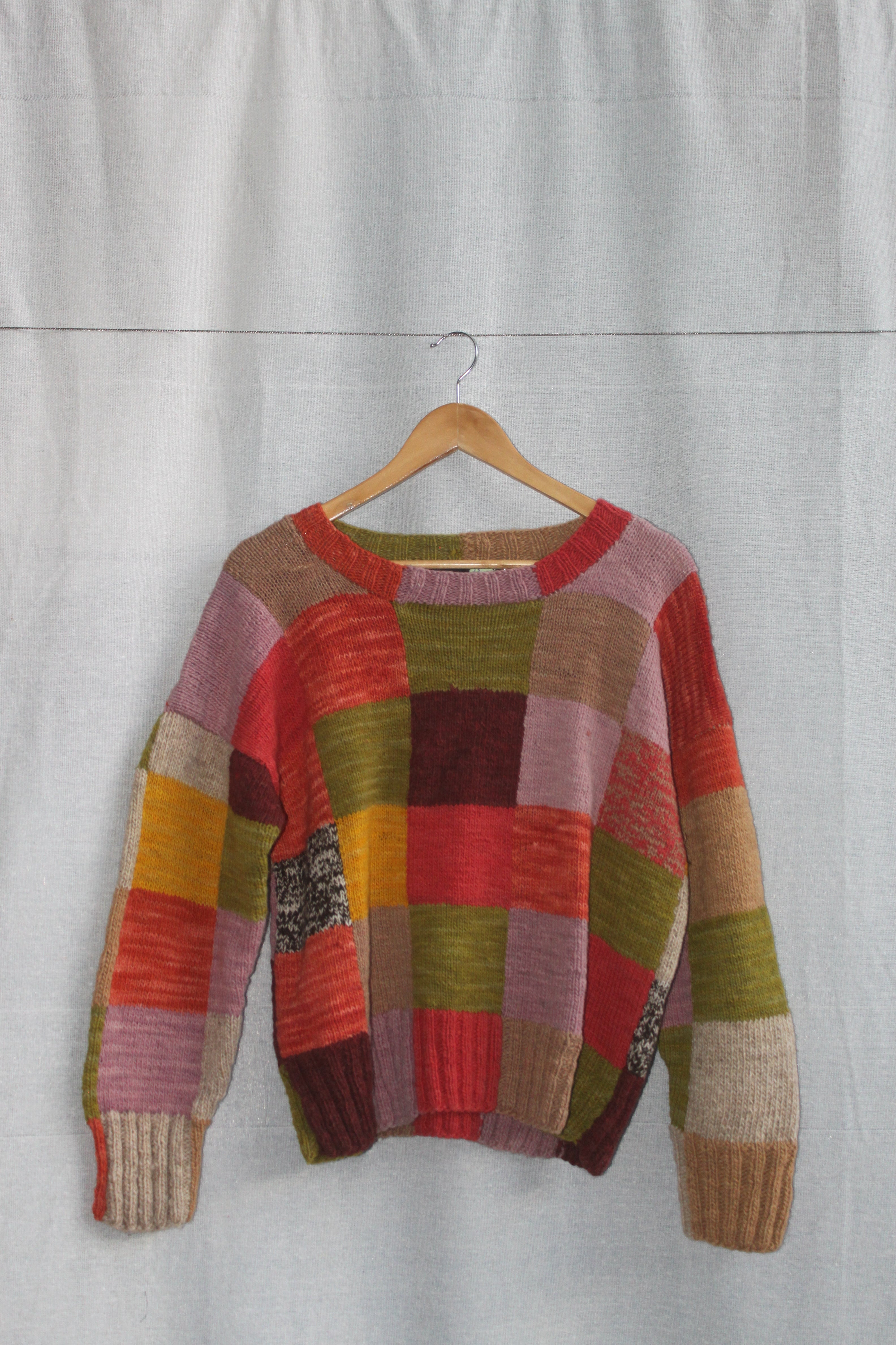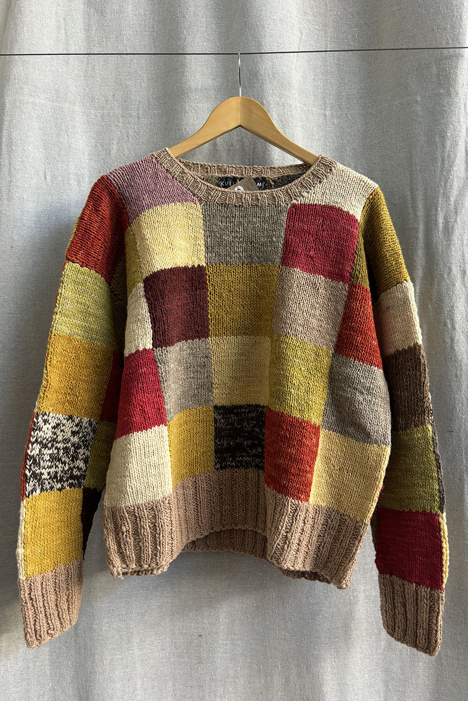 This Mosaic Patchwork Jumper is beautifully crafted by the women artisans of Kullvi Whims using naturally-dyed woollen yarns upcycled from the post production excess. Each jumper boasts a unique design that reflects the beauty of mountain landscapes, including terraced fields, blooming apple blossoms, and snow-capped peaks. This piece not only provides warmth and style but also tells a story of sustainability and creativity, making it a perfect addition to any wardrobe.