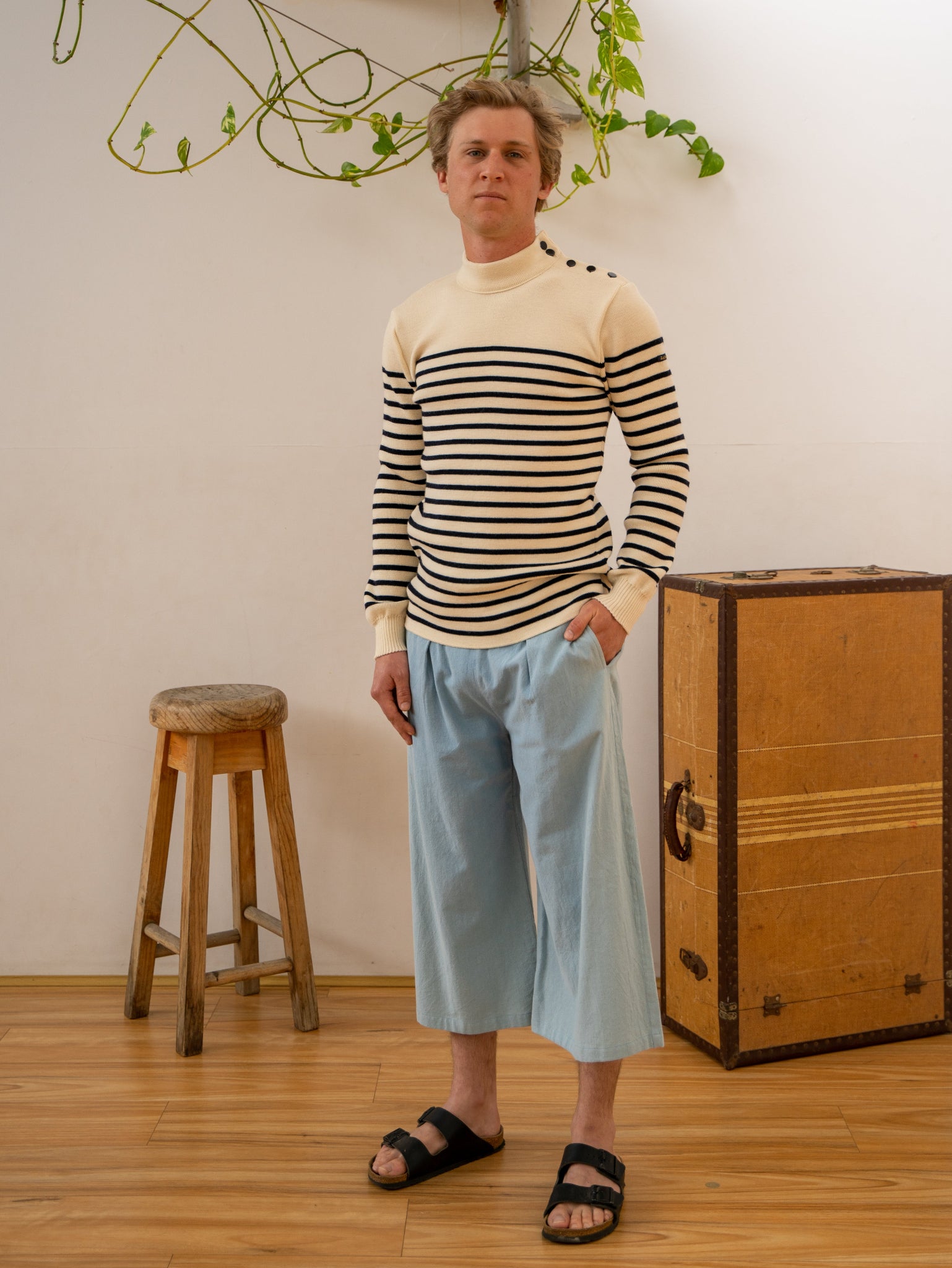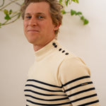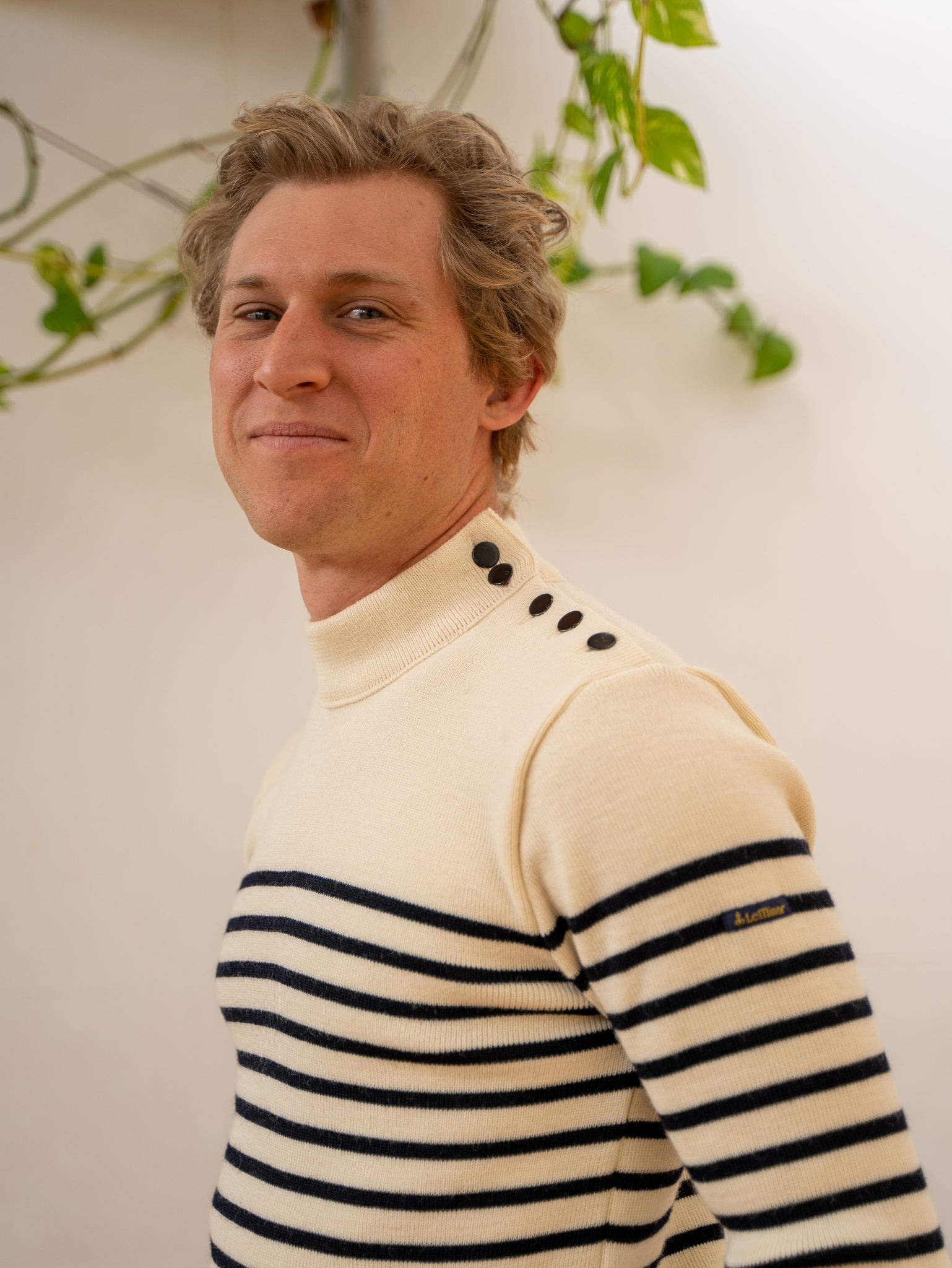Le Minor is renowned worldwide for its authentic marinière, which has been 100% made in France since the 1970s. The men's striped sailor suit is thoughtfully designed, crafted, and finished in our local Breton workshop.