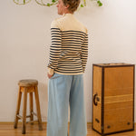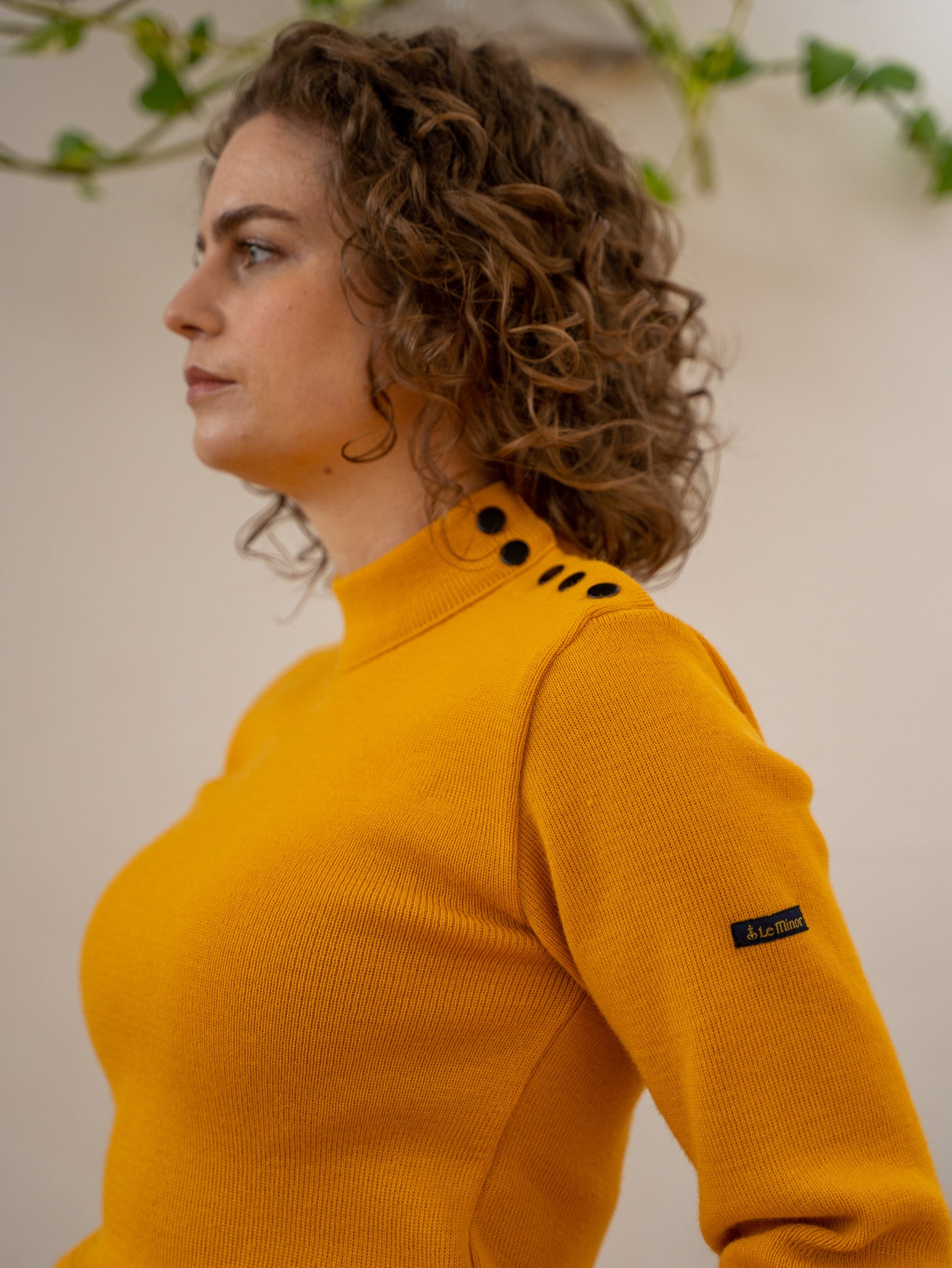 The sailor sweater is a timeless staple in the everyone's wardrobe. With its fitted design and straight, close-fitting cut, it creates a chic and elegant silhouette. This marinière sweater has been a cornerstone of Le Minor's collections for decades, embodying the essence of Breton knitwear.