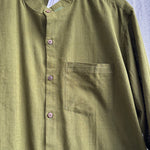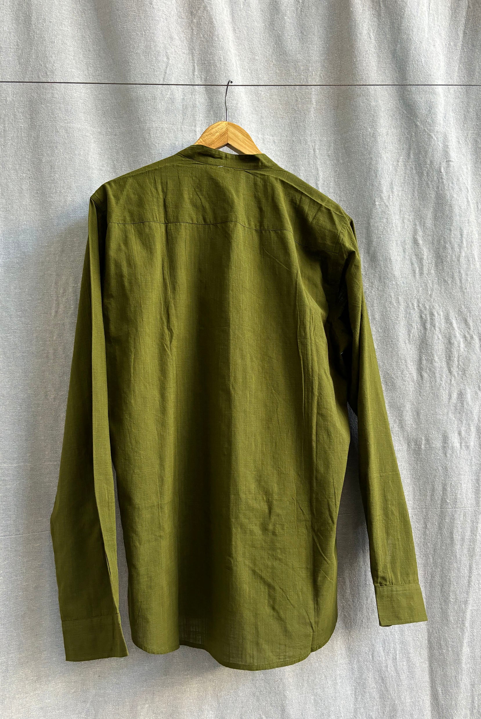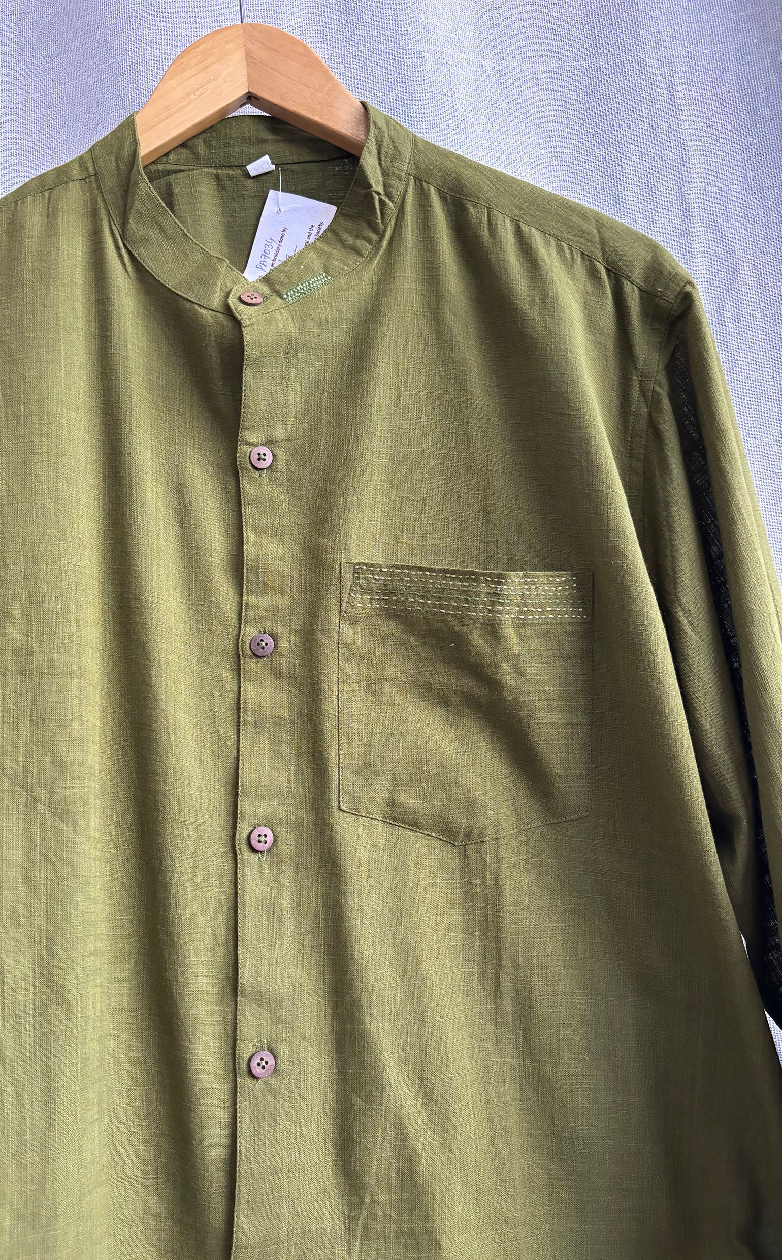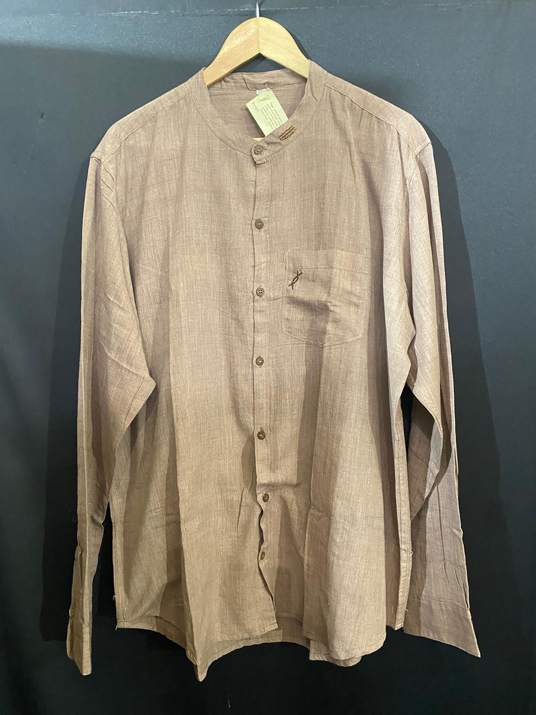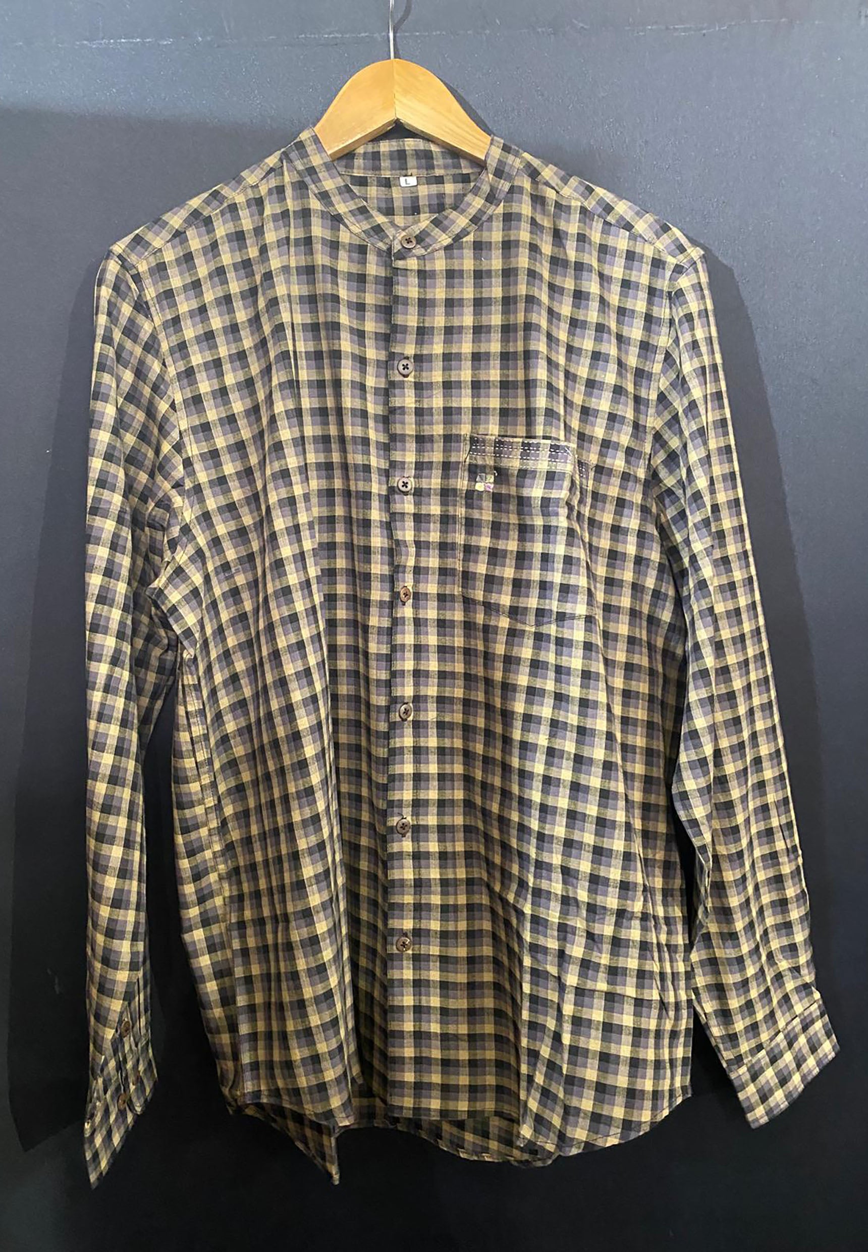 The Men Banned Collar Long Sleeved Shirt is adorned with minimal hand embroidery and equipped with a chest pocket. Comfortable with a classic fit, this shirt is an essential addition to your staple wardrobe.