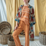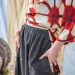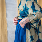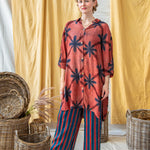 Crafted from 100% soft modal-silk blend featuring natural plant-based pigments and traditional Ajrakh block printing by Suffiyan Khatri.